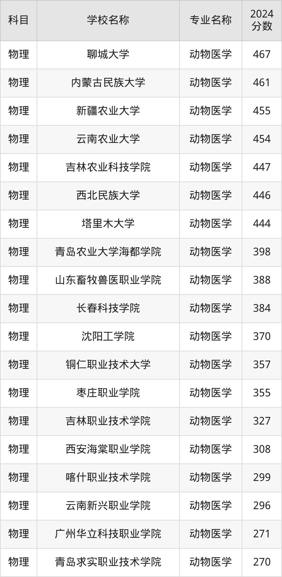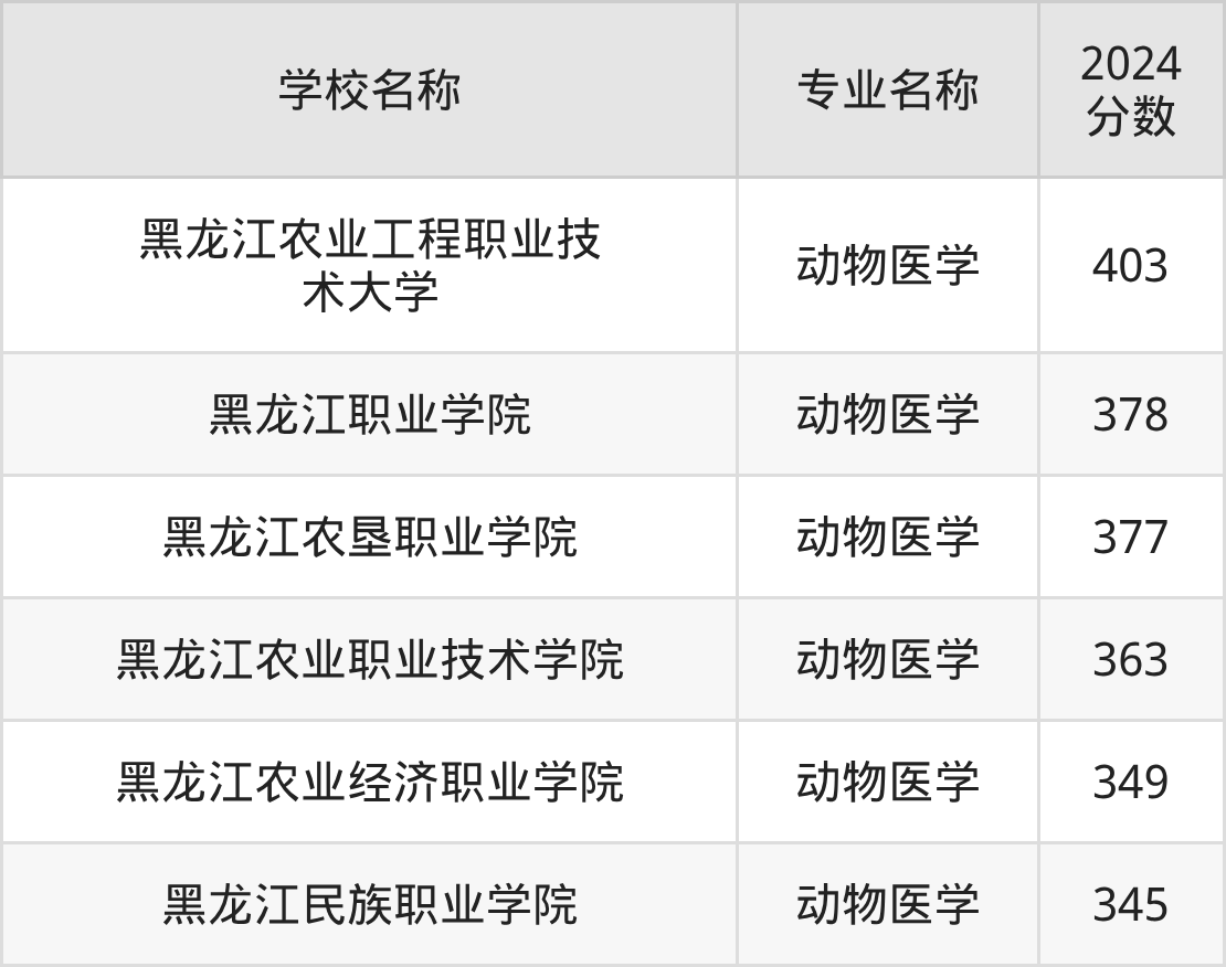 | 黑龙江农业工程职业技 术大学 | 动物医学 | 370 |