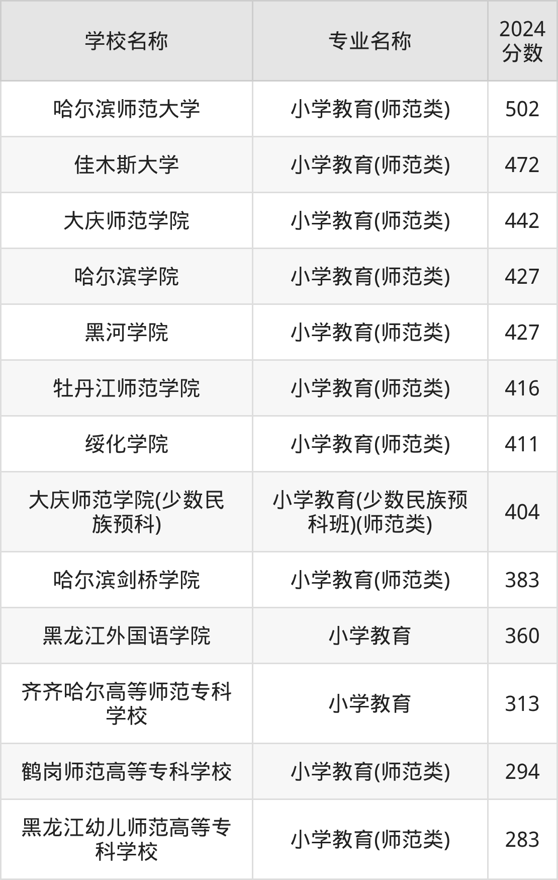 圆梦小编根据黑龙江2024年高考历史组专业分,将开设了小学教育专业且位于黑龙江省内的大学按照“录取分”从高到低排序,得出了以上榜单。