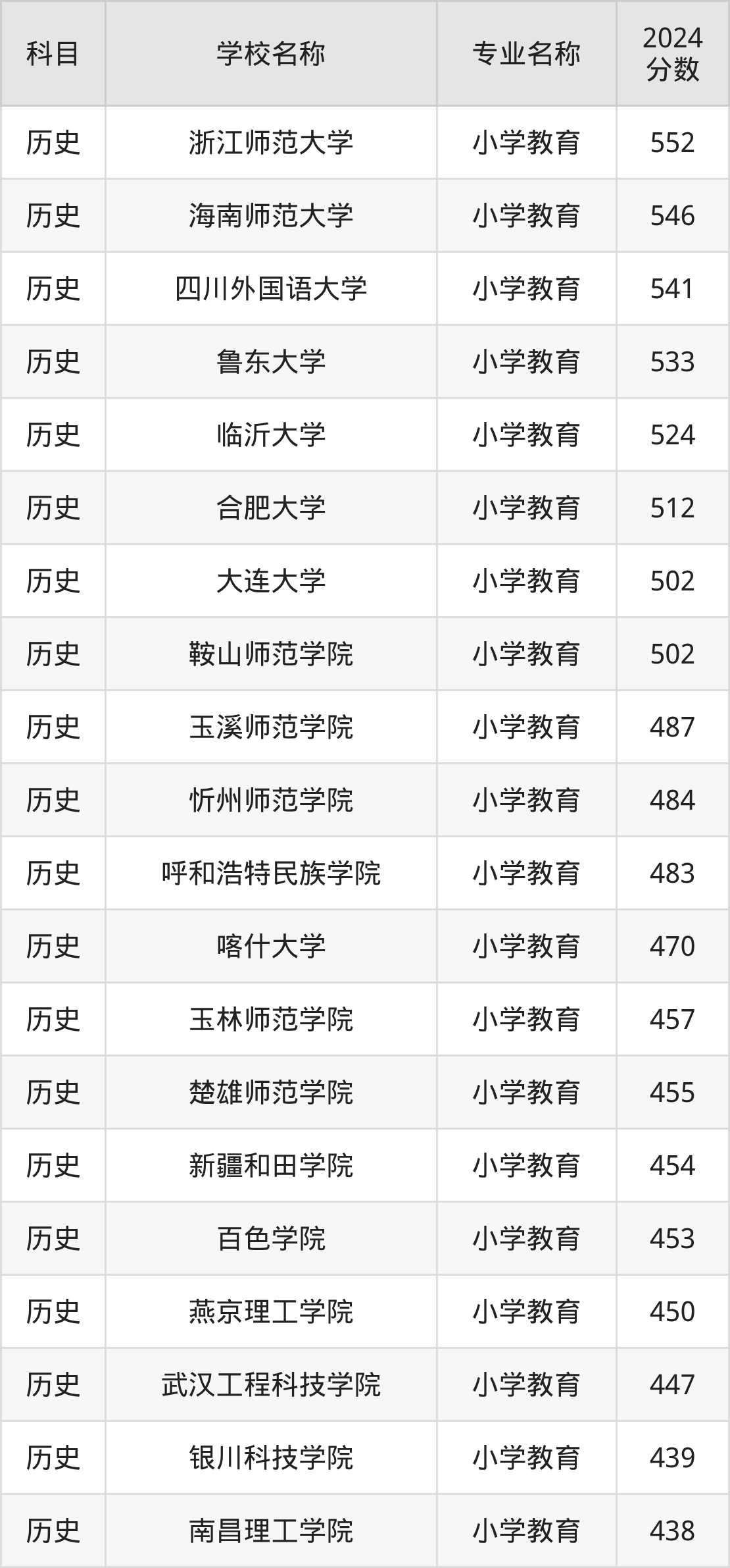 | 绥化学院 | 小学教育(师范 类) | 456 |