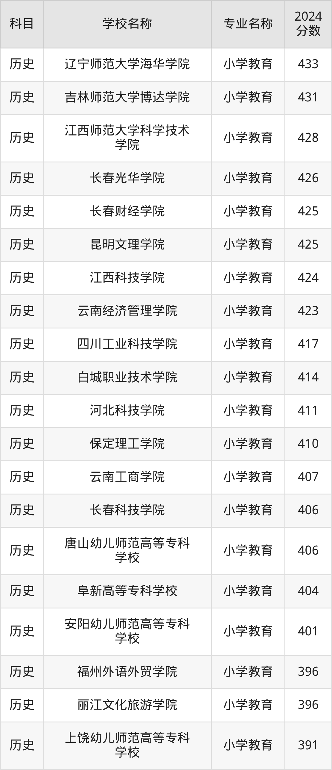 | 哈尔滨剑桥学院 | 小学教育(师范 类) | 398 |