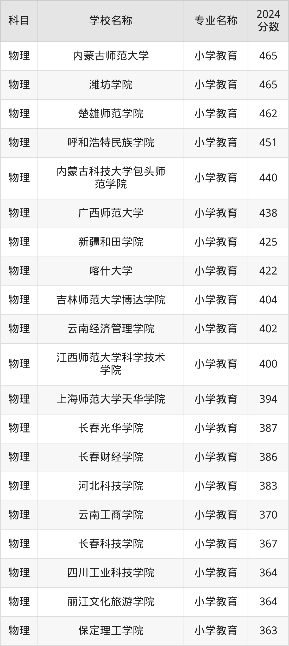 | 牡丹江师范学院 | 小学教育(师范 类) | 475 |