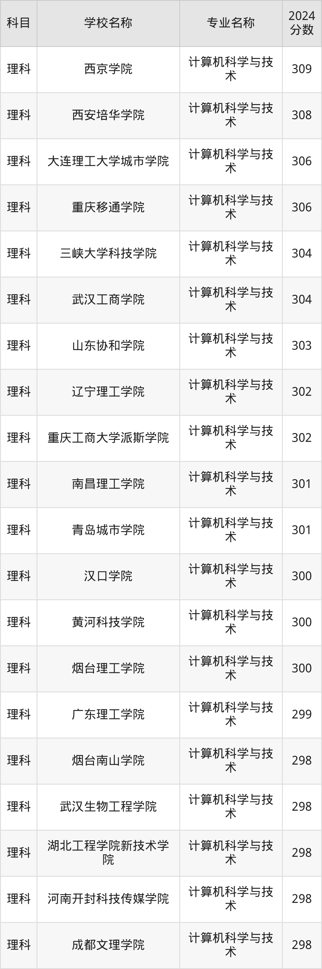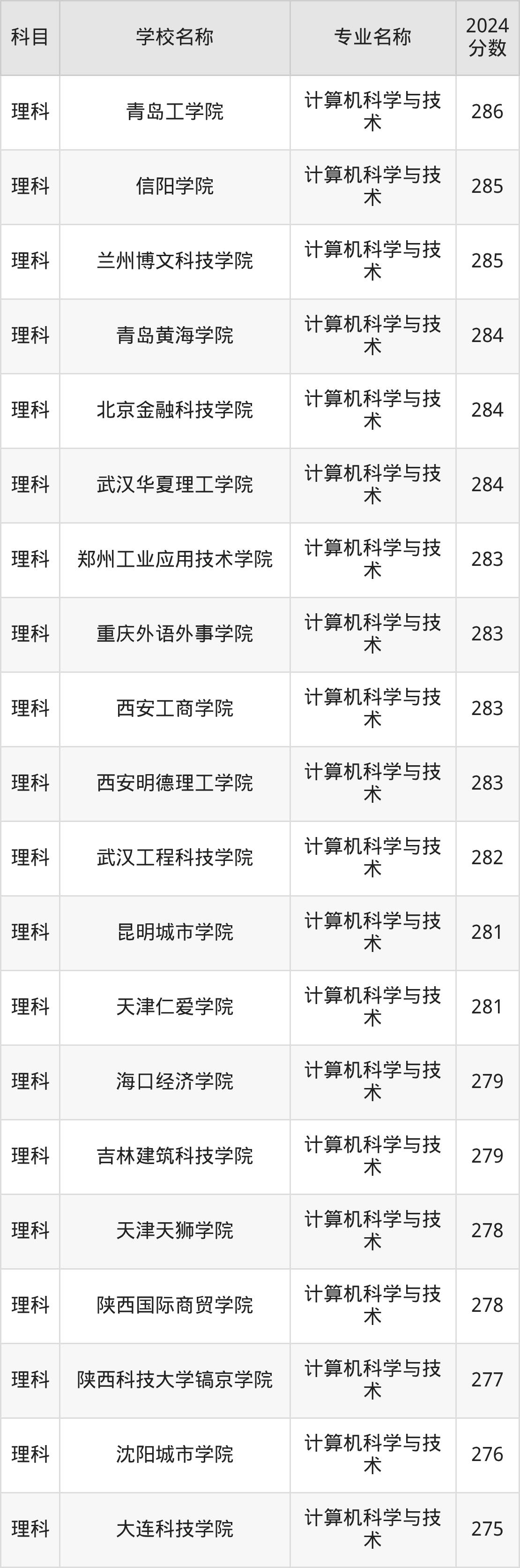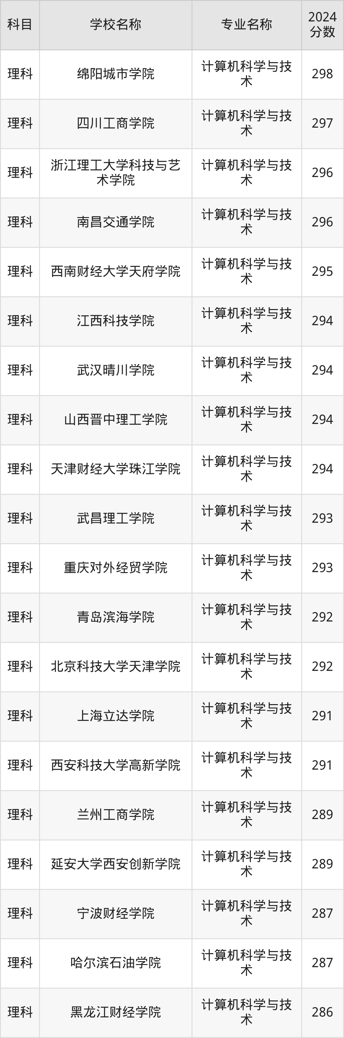 | 新疆科技学院 | 计算机科学与技 术(人民警察子 女计划) | 280 |