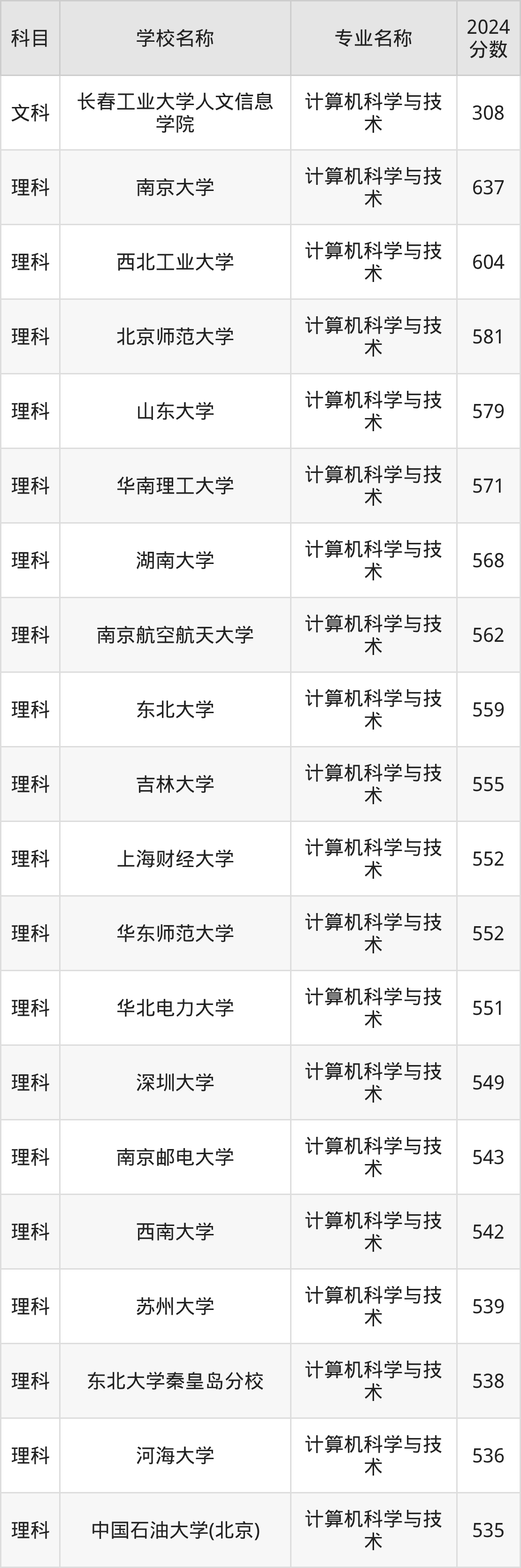 通过上文大家可以知晓,在新疆维吾尔自治区内招计算机科学与技术专业的院校数量较少,所以下文将为2026届高考生继续展示:维吾尔自治区外大学的计算机科学与技术专业2024年在新疆高考的录取情况,包含长春工业大学人文信息学院、南京大学、西北工业大学、北京师范大学、山东大学。
