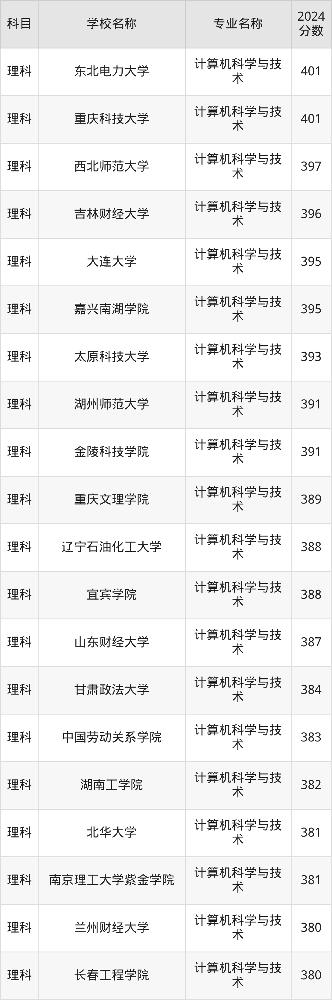 | 新疆财经大学 | 计算机科学与技 术 | 383 |