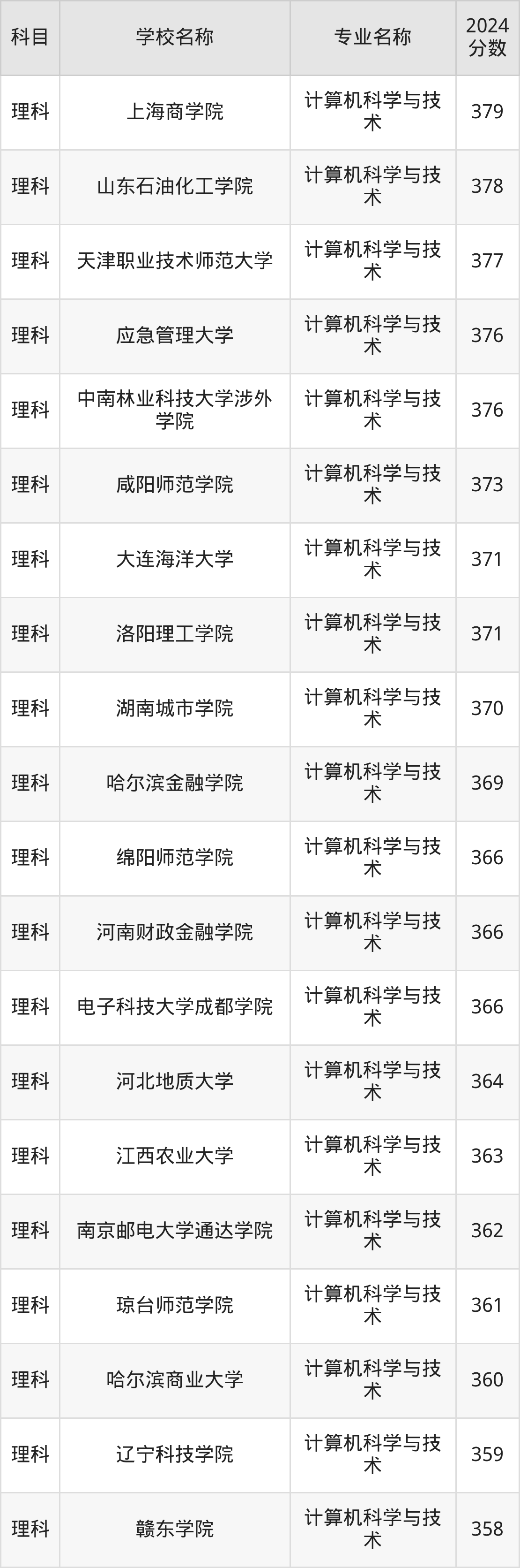 | 新疆农业大学 | 计算机科学与技 术(人民警察子 女计划) | 343 |