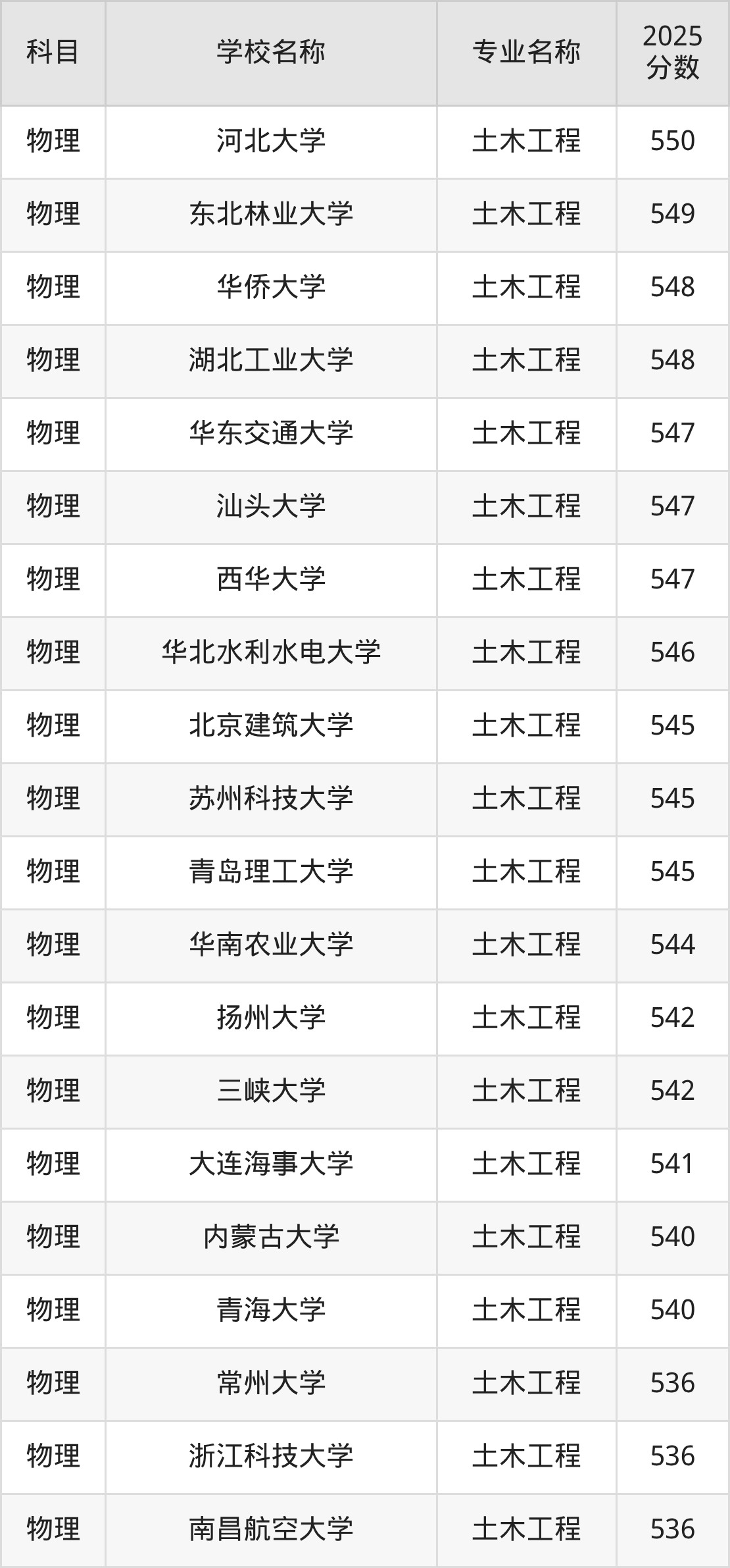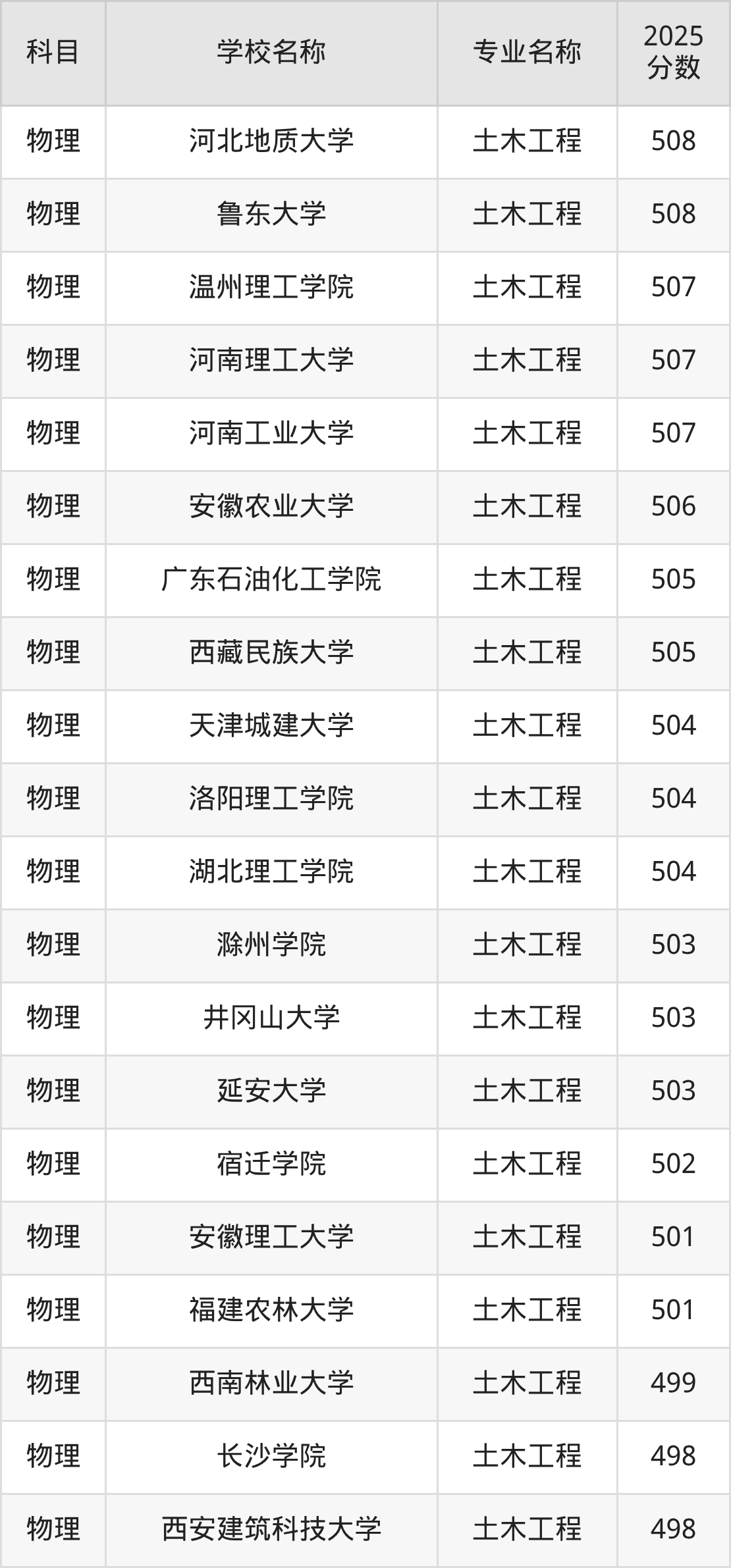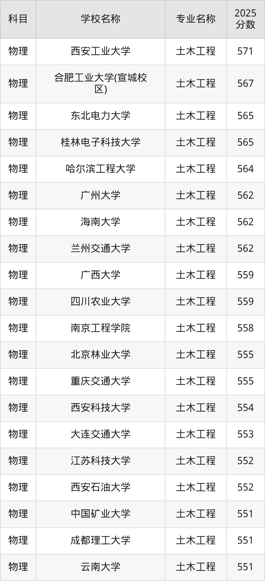 下文将为大家展示山西省大学土木工程专业2025年在山西高考的最低录取分数线!