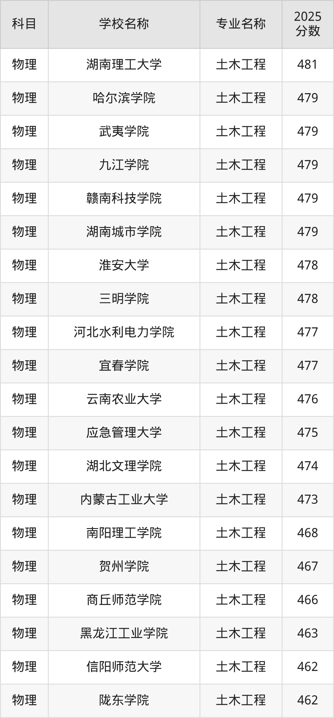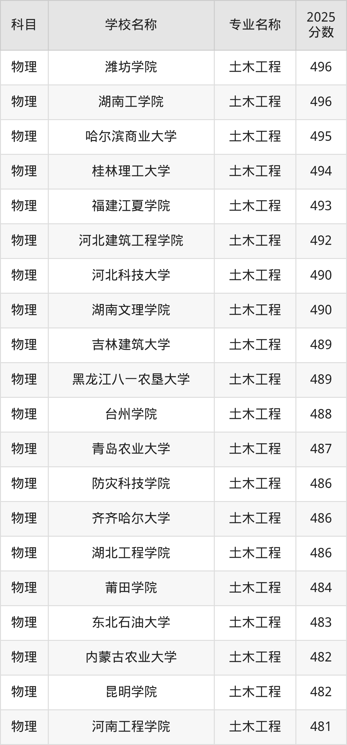 | 山西农业大学 | 土木工程 | 481 |