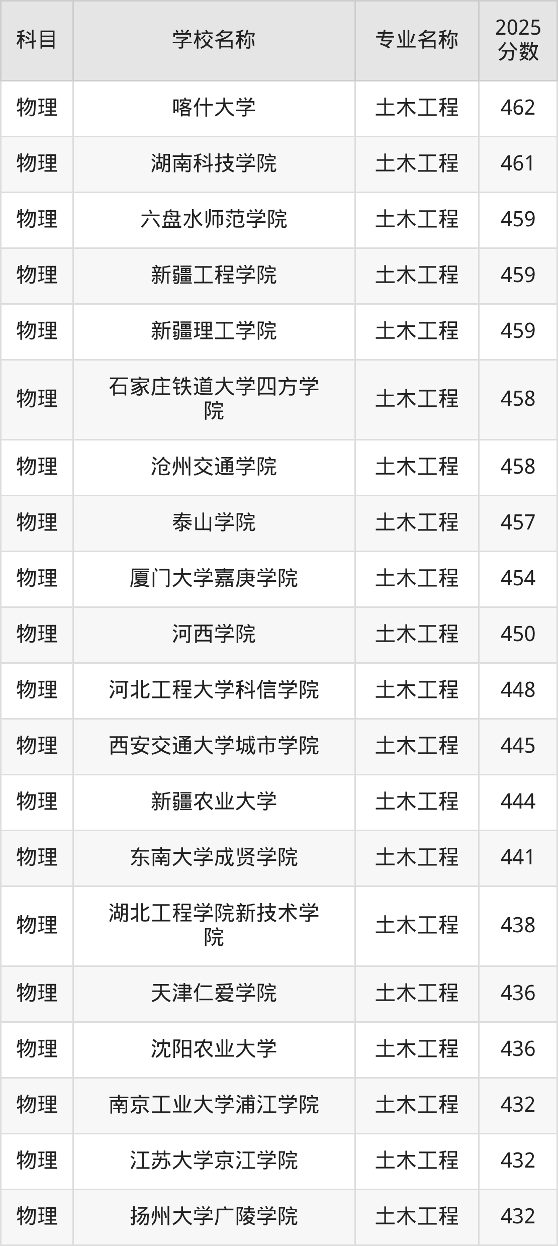 | 学校名称 | 专业名称 | 2025 分数 |