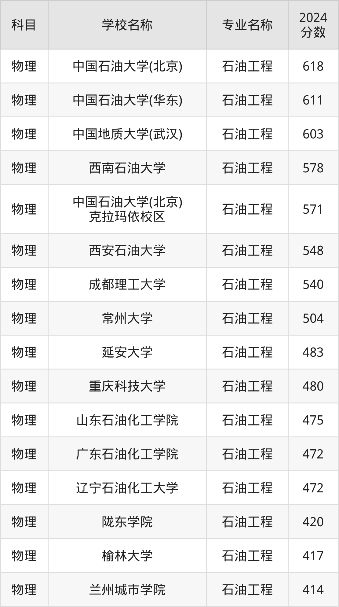 | 东北石油大学 | 石油工程 | 501 |
