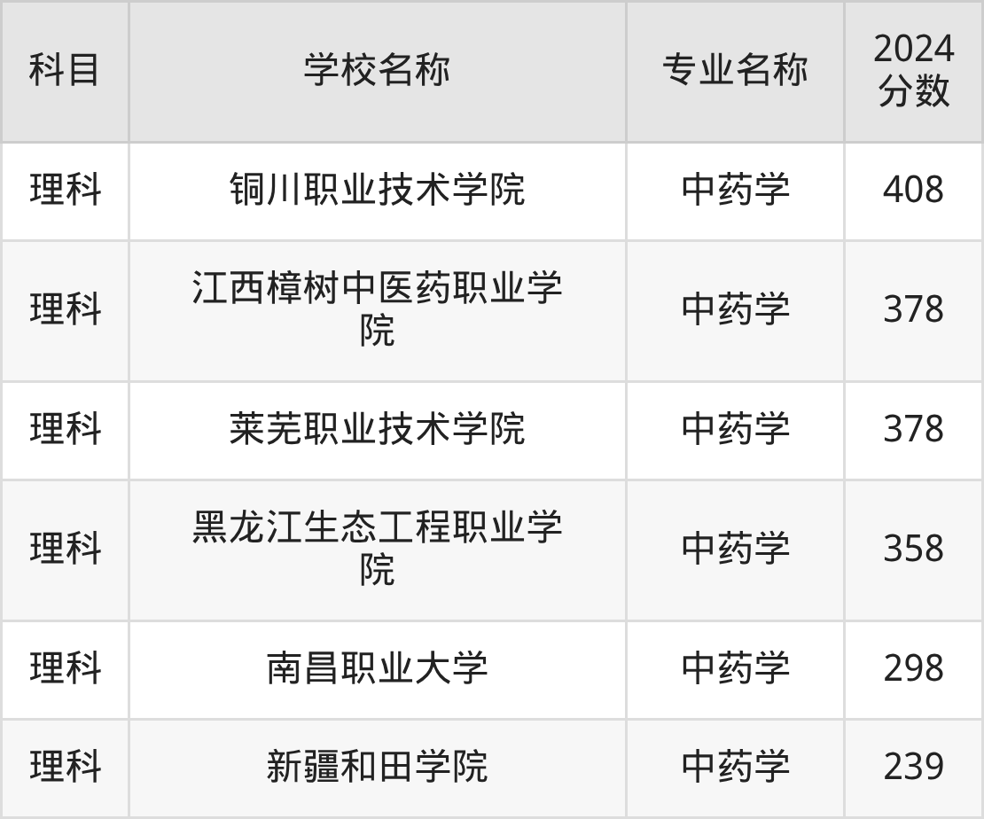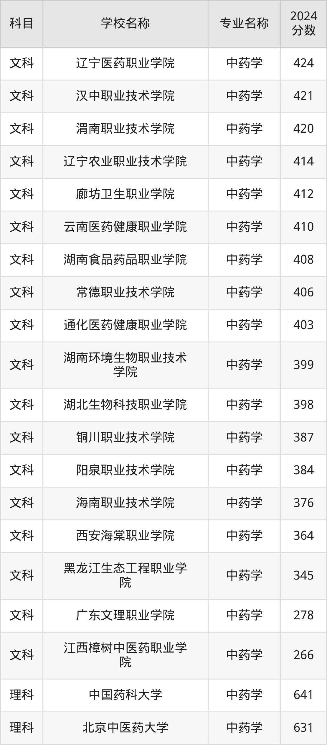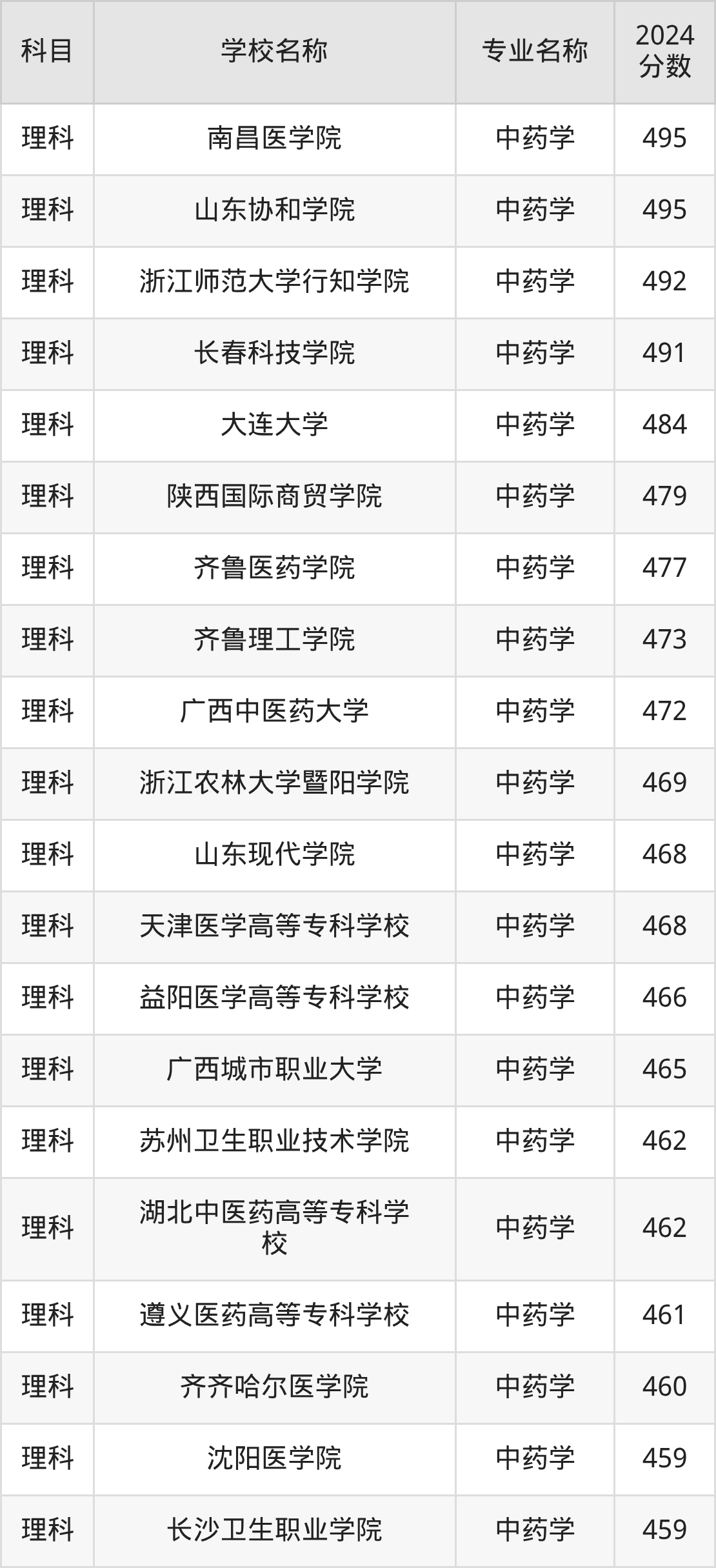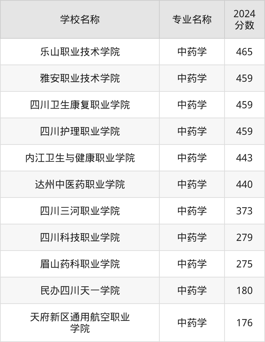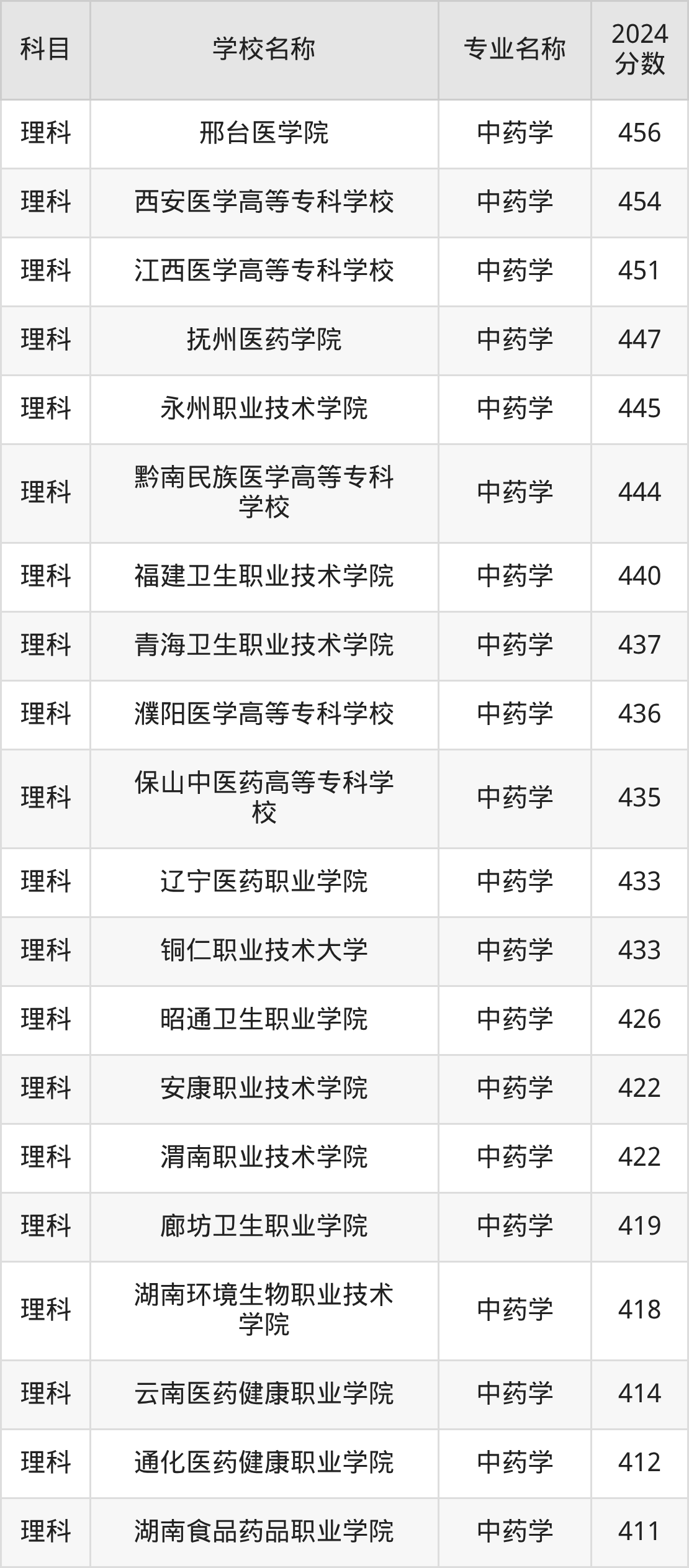 | 四川中医药高等专科学 校 | 中药学 | 469 |