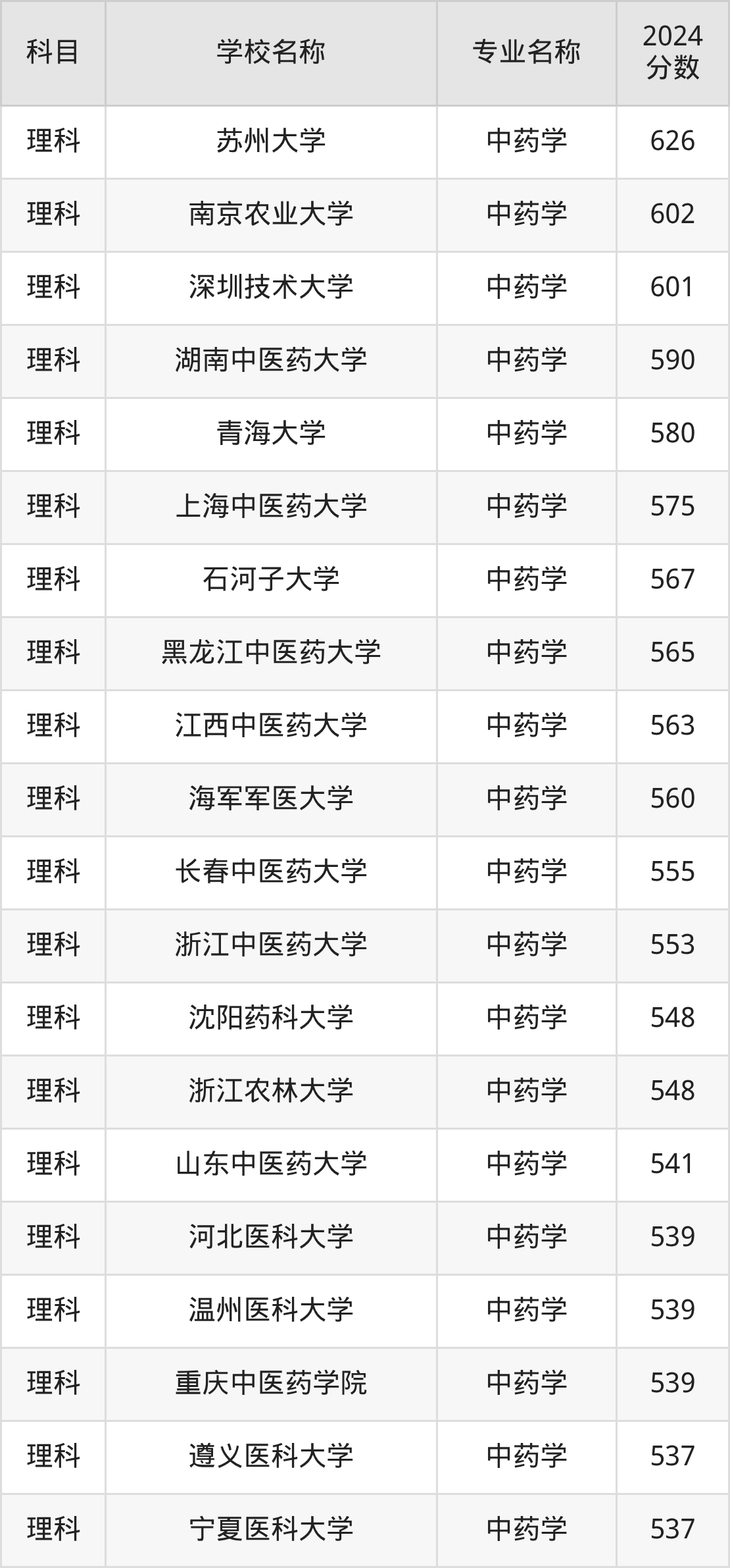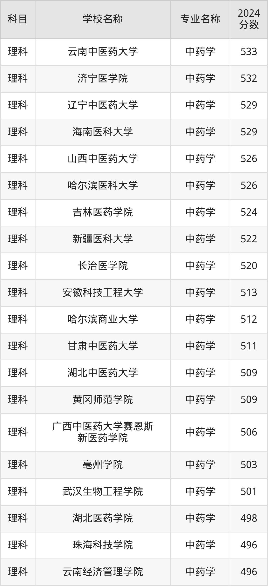 下文将为大家展示四川省大学中药学专业2024年在四川高考的最低录取分数线!