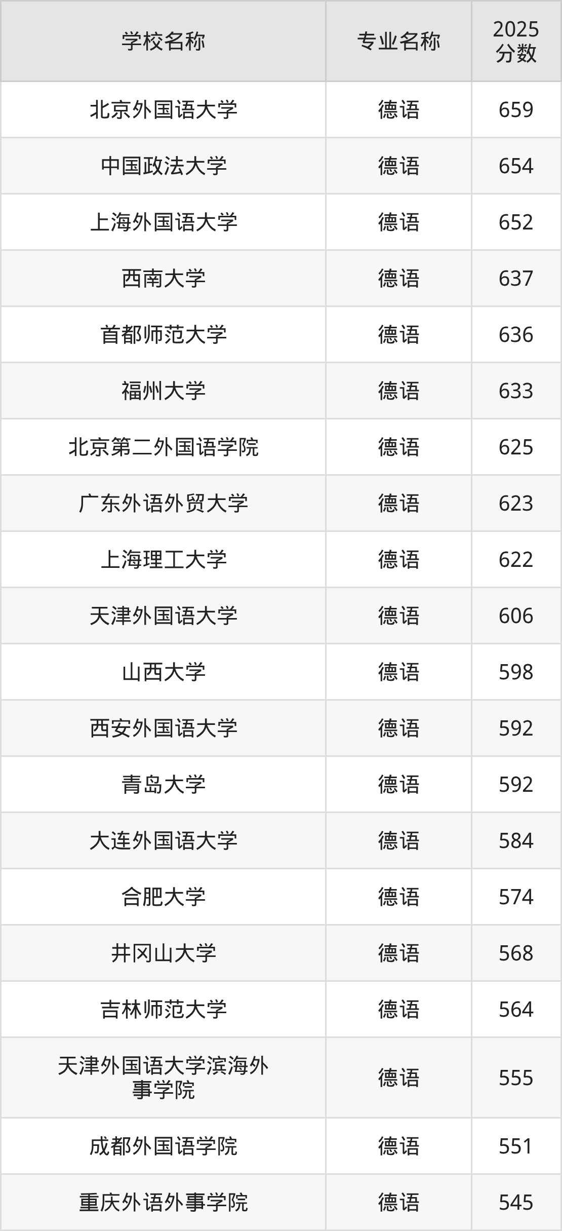 下文将为大家展示浙江省大学德语专业2025年在浙江高考的最低录取分数线!