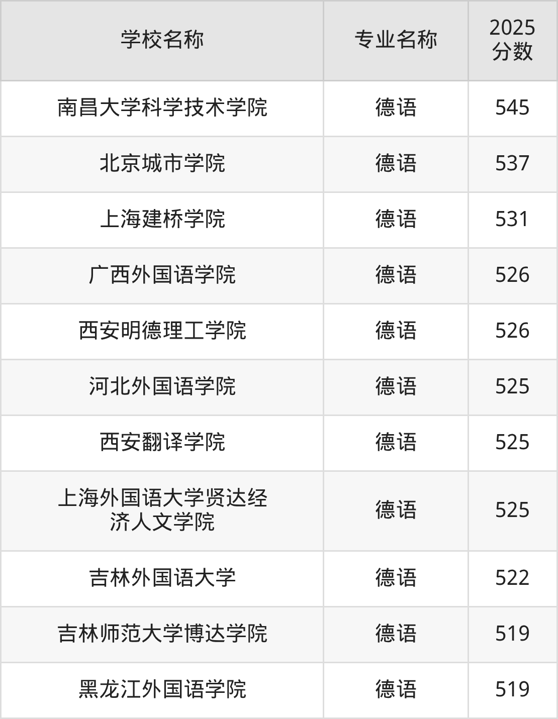 圆梦小编根据浙江2025年高考专业分,将开设了德语专业且位于浙江省内的大学按照“录取分”从高到低排序,得出了以上榜单。