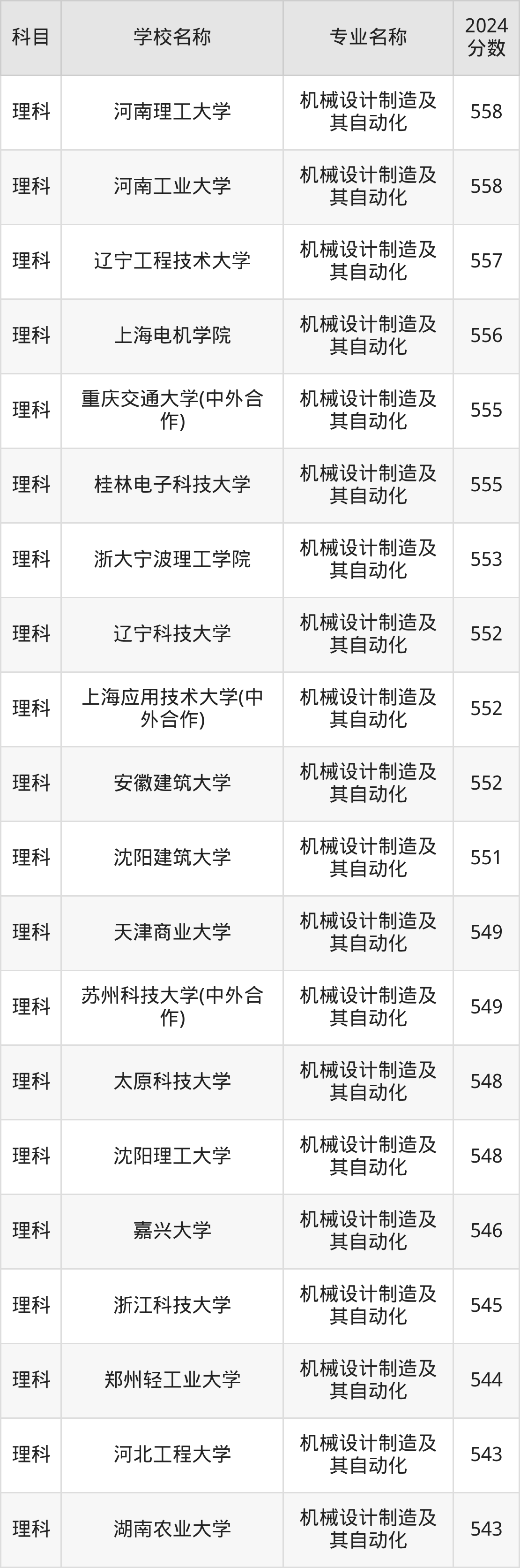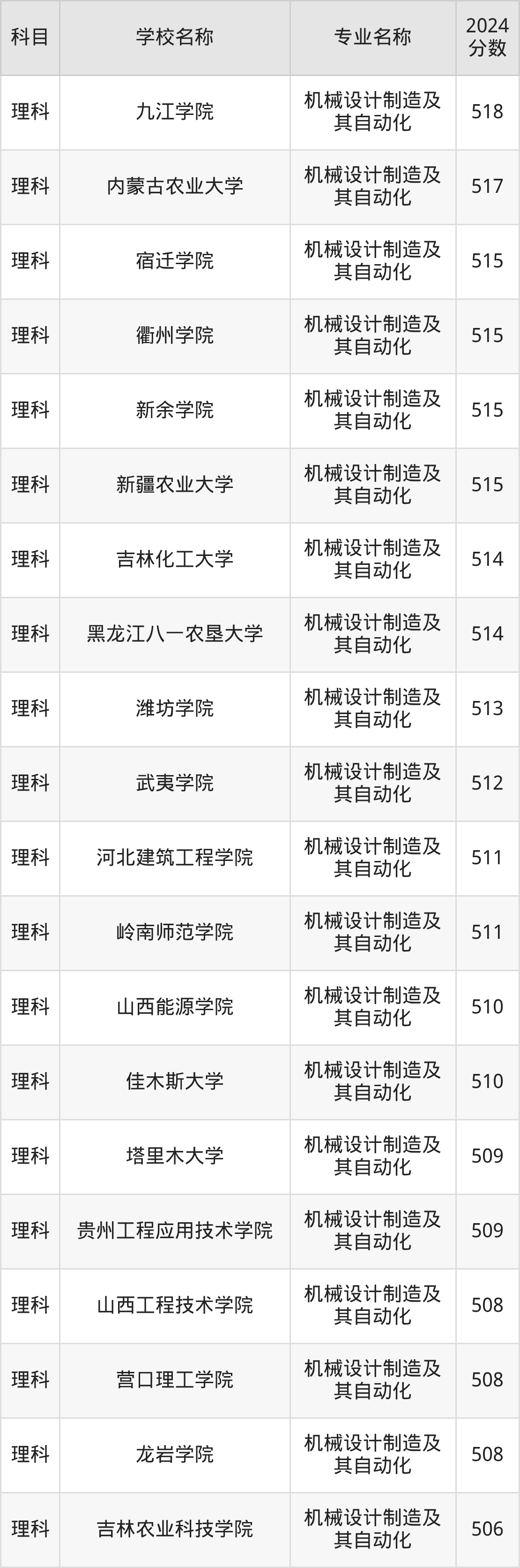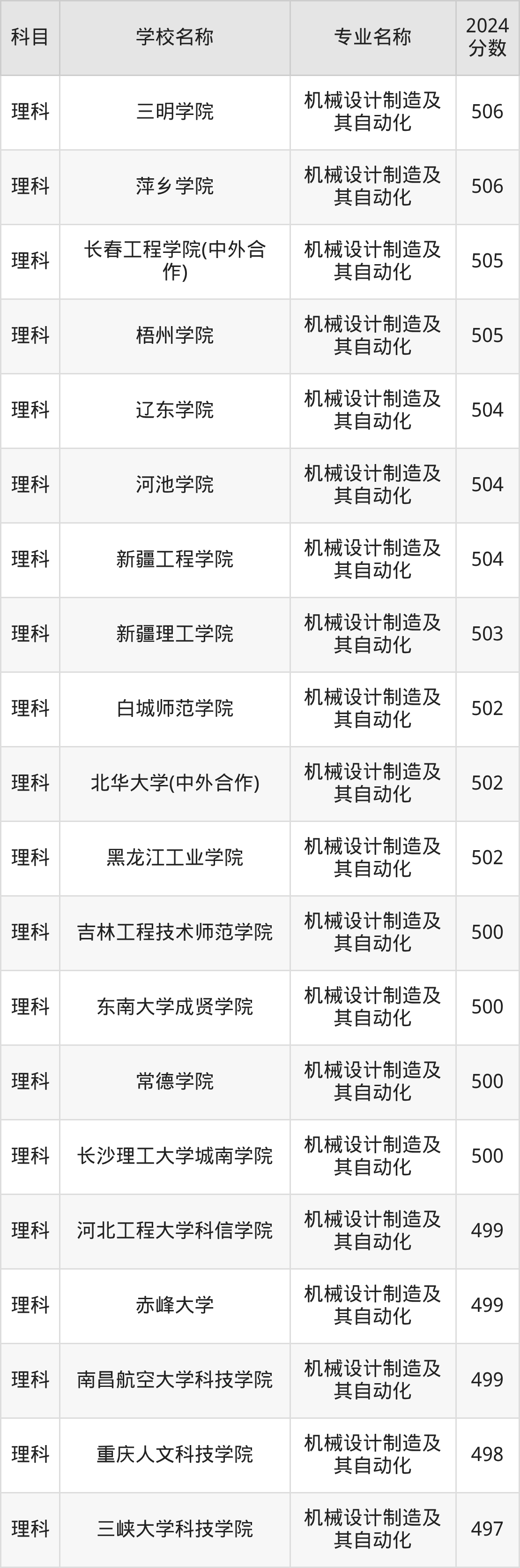 | 西南交通大学希望学院 | 机械设计制造及 其自动化 | 485 |