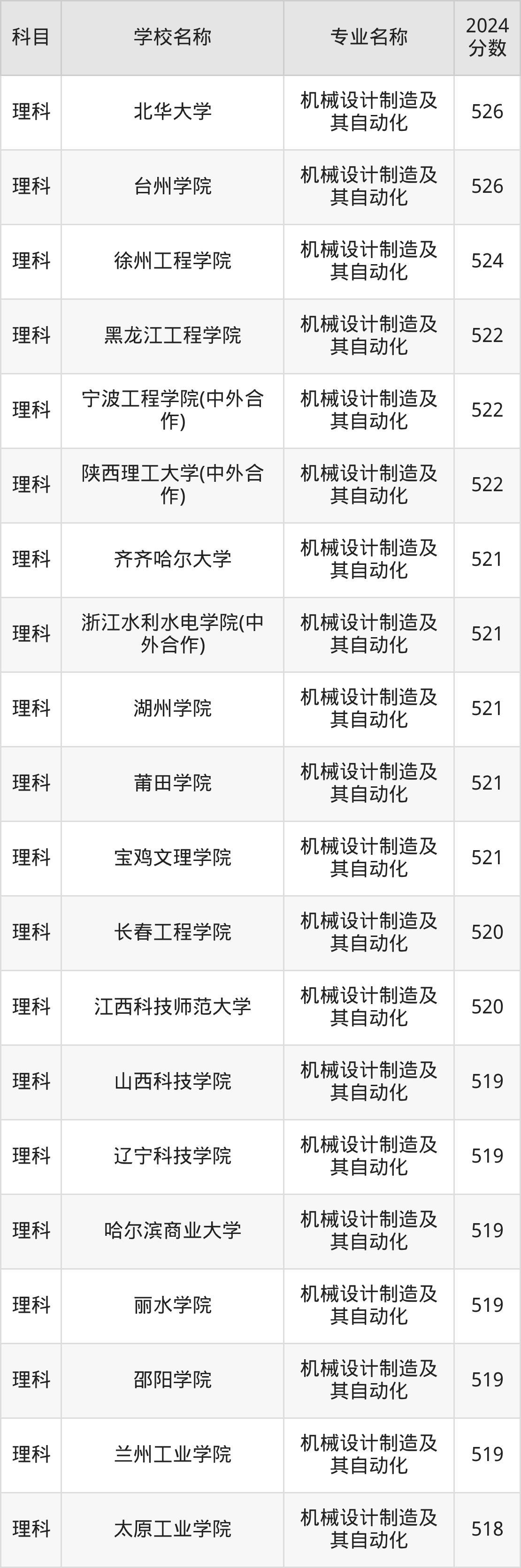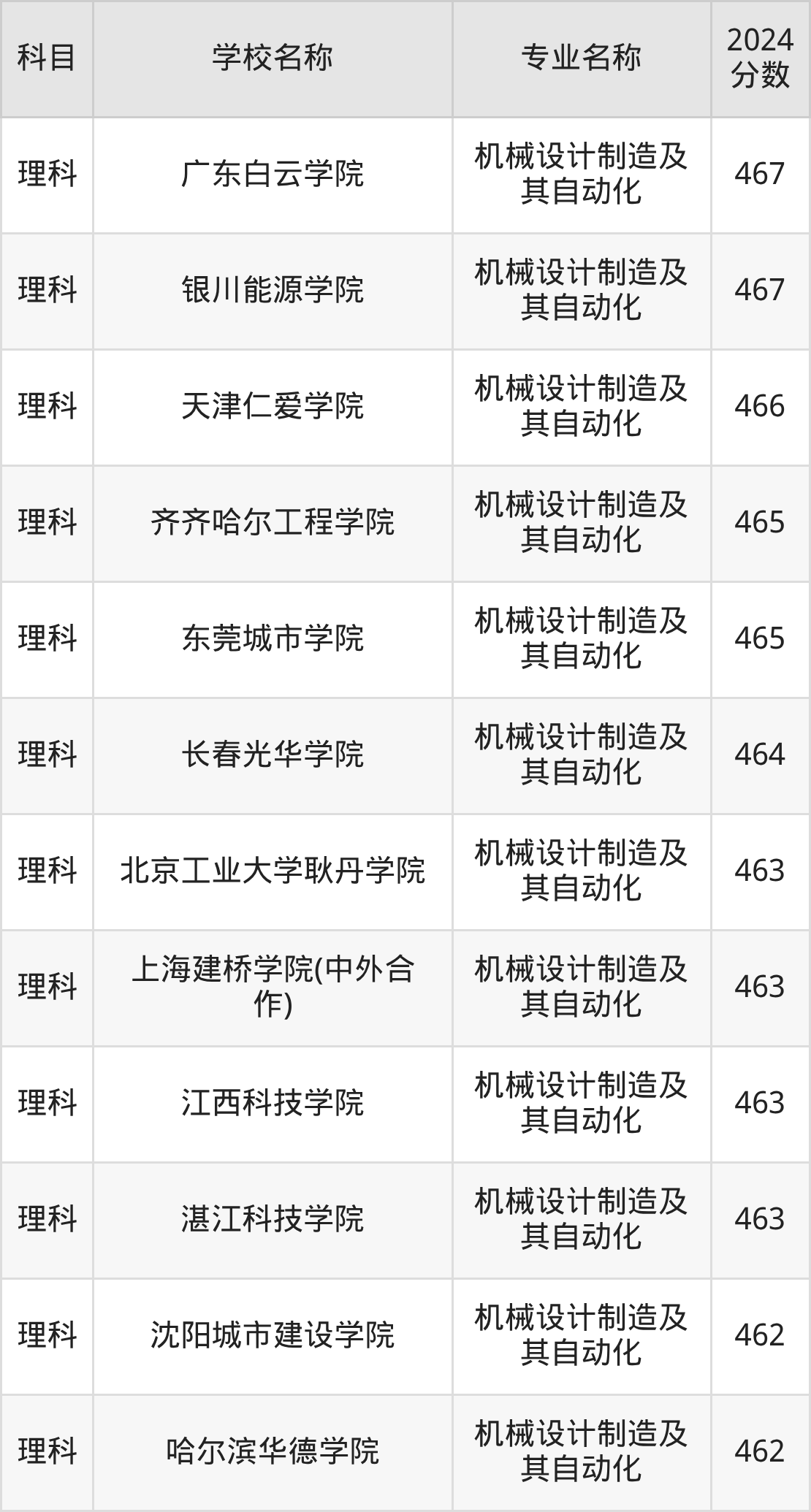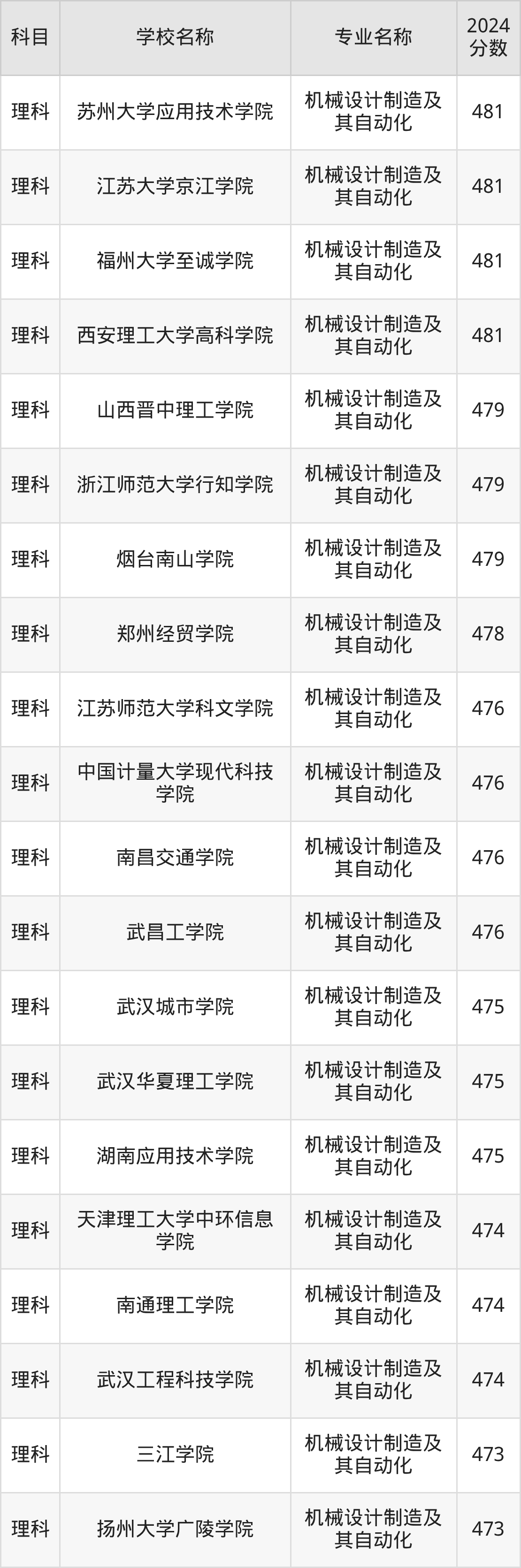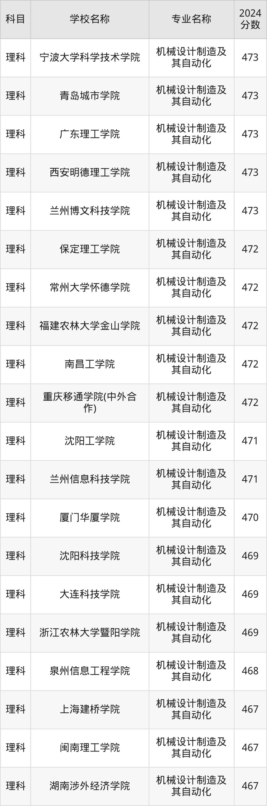 | 吉利学院 | 机械设计制造及 其自动化 | 471 |