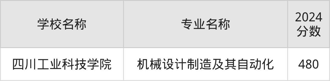 | 四川工业科技学院 | 机械设计制造及 其自动化 | 477 |