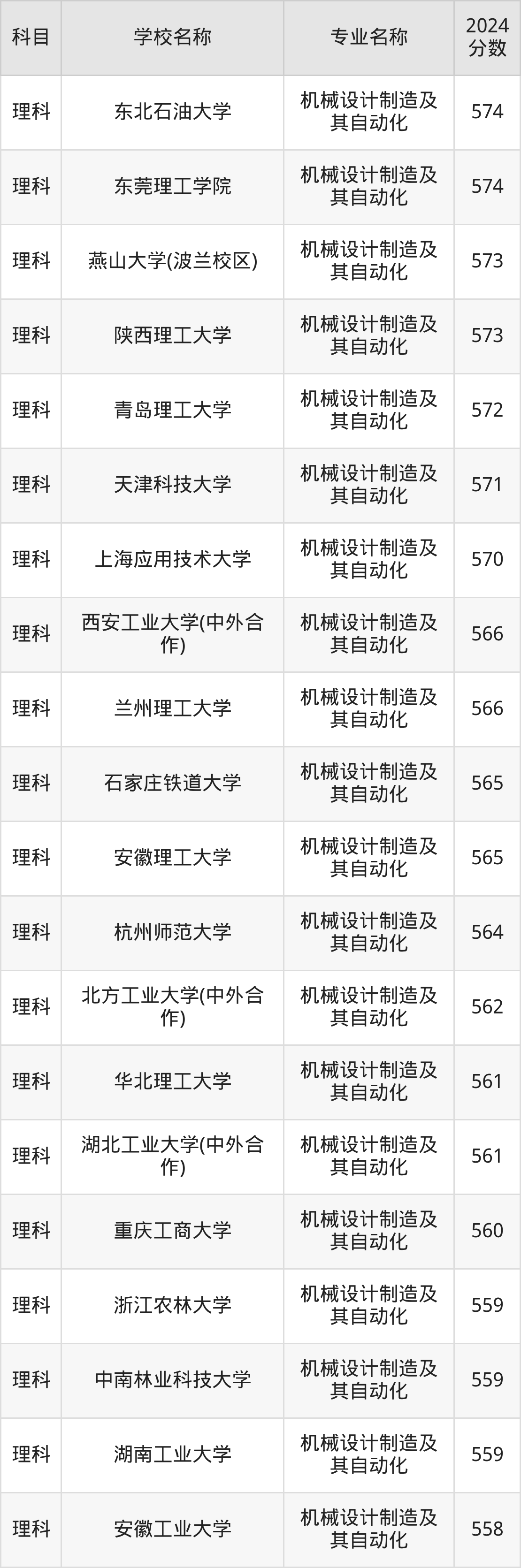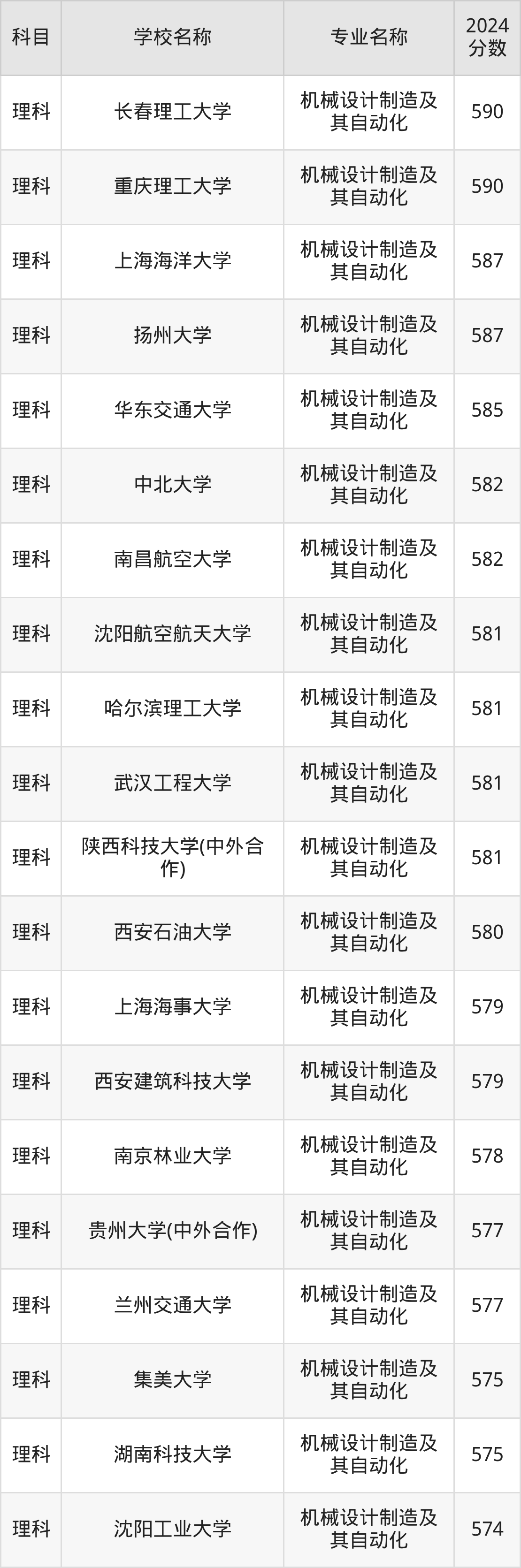 | 成都大学 | 机械设计制造及 其自动化 | 574 |
