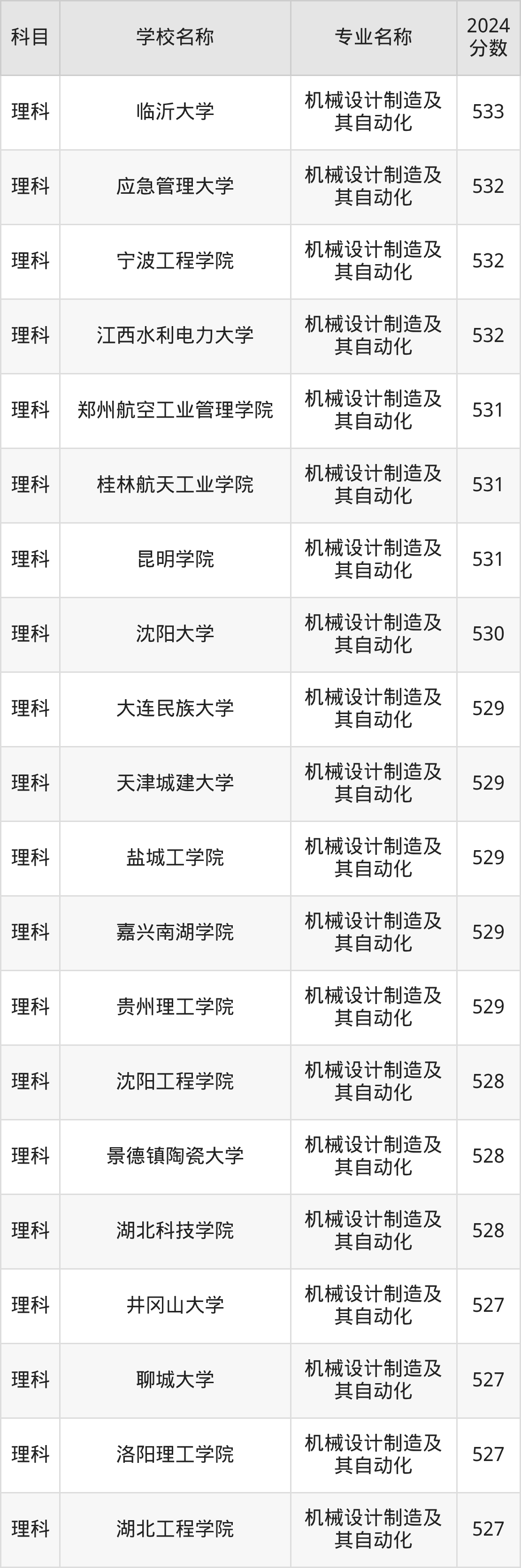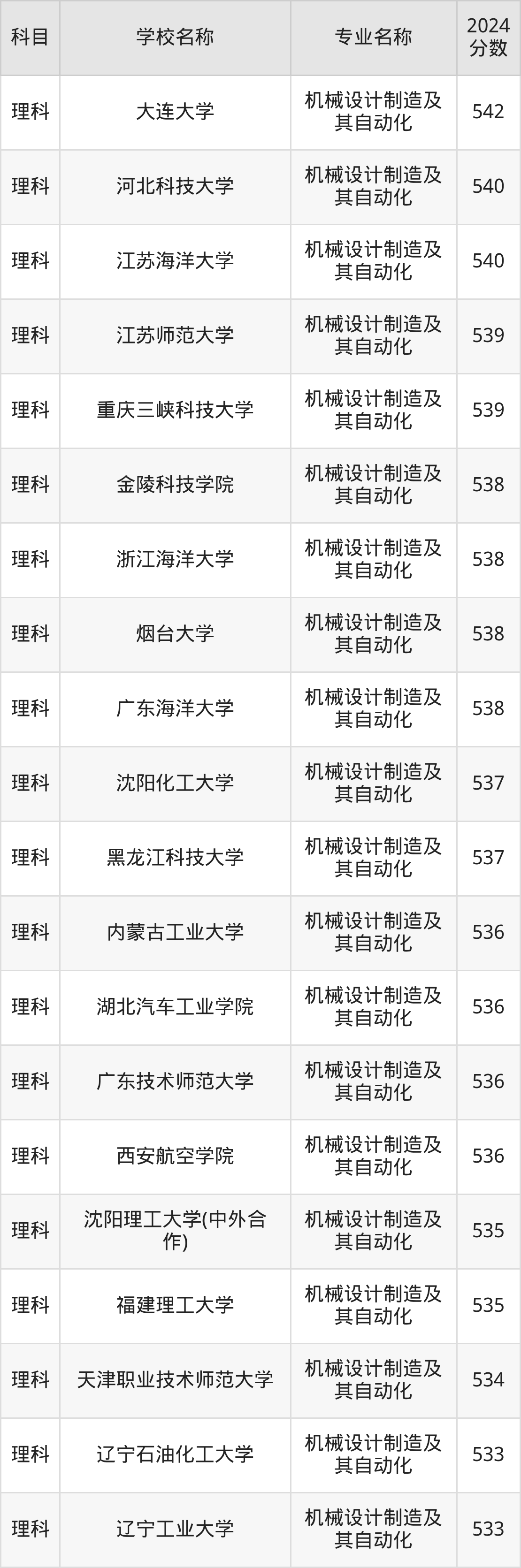 | 成都工业学院 | 机械设计制造及 其自动化 | 534 |