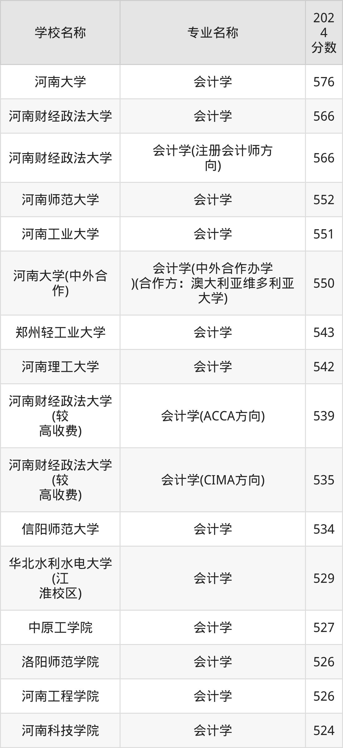 | 河南大学(中外合作) | 会计学(中外合 作办学)(合作 方:澳大利亚维 多利亚大学) | 545 |