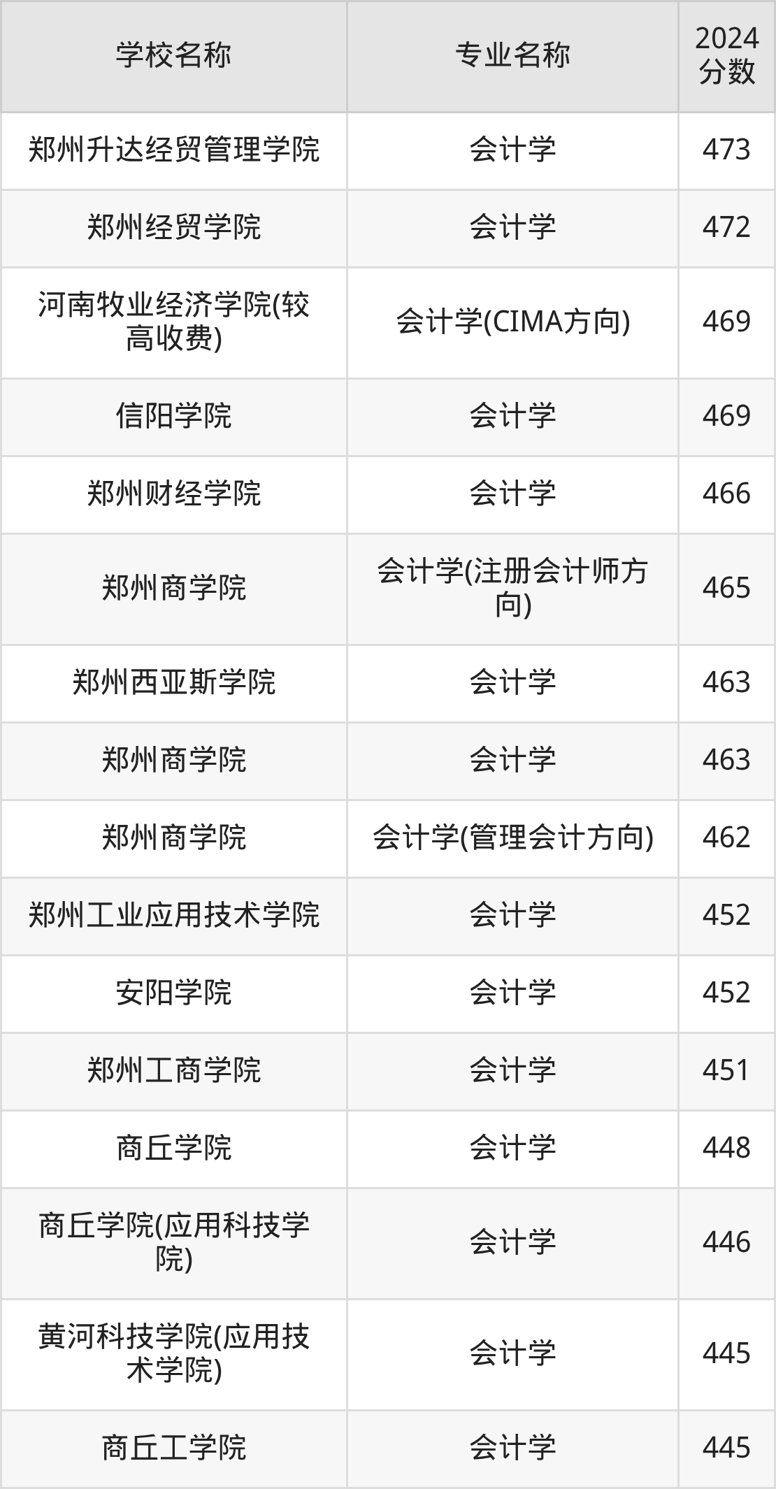 | 郑州经贸学院 | 会计学 | 449 |