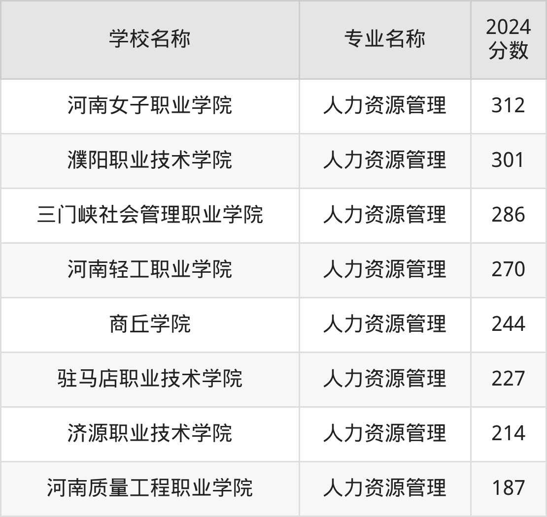 下文将为大家展示河南省大学人力资源管理专业2024年在河南高考的最低录取分数线!