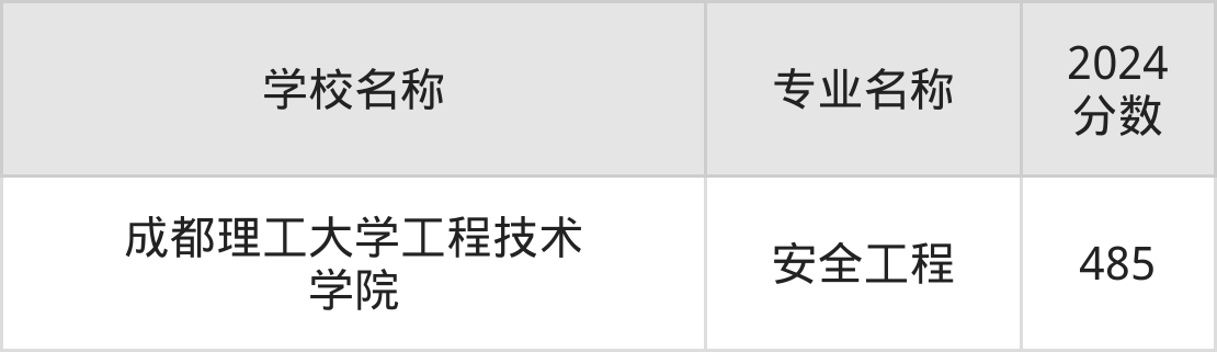 | 成都理工大学工程技术 学院 | 安全工程 | 483 |