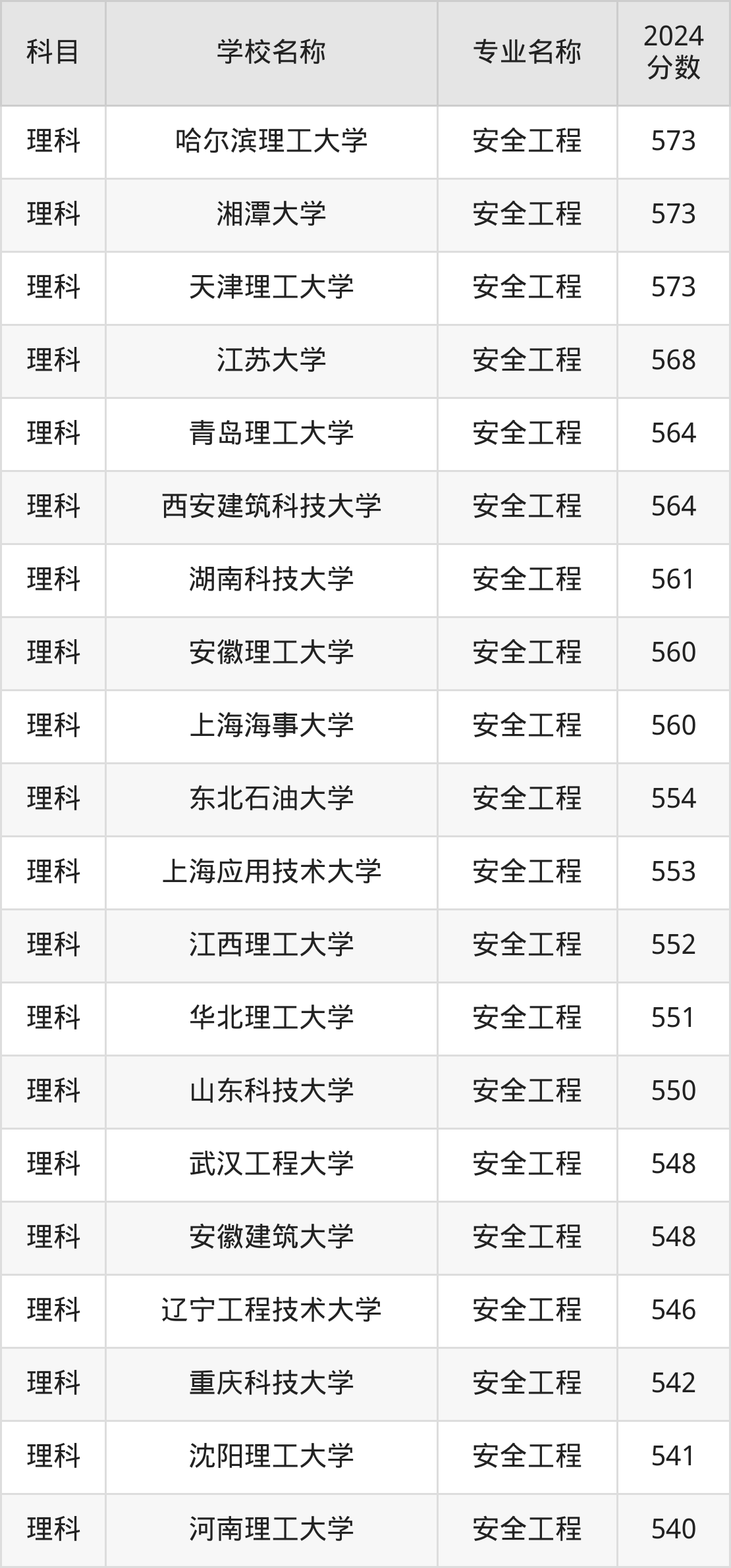 | 西南交通大学(安全科 学与工程类) | 安全工程(中外 合作办学) | 579 |