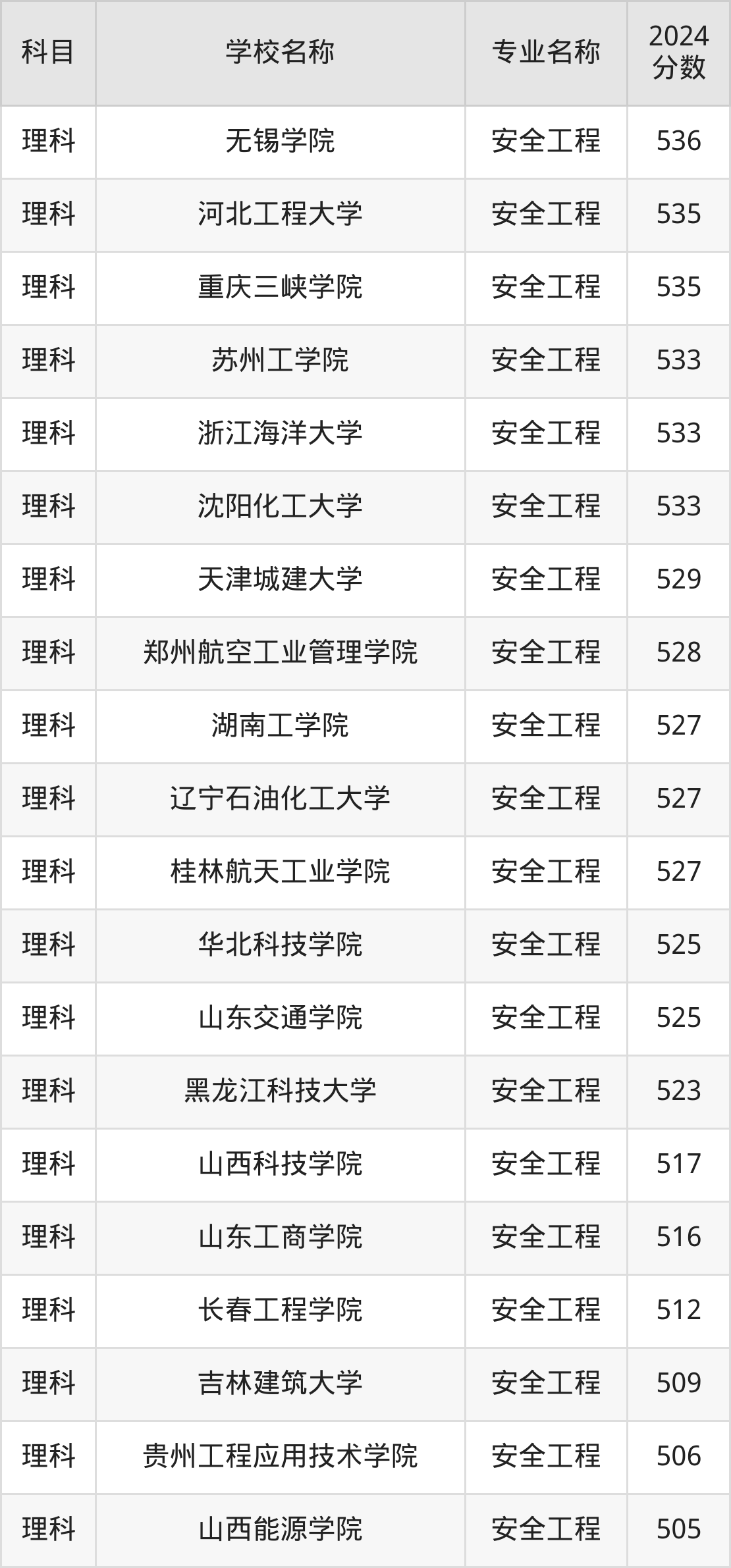 | 四川轻化工大学 | 安全工程 | 536 |