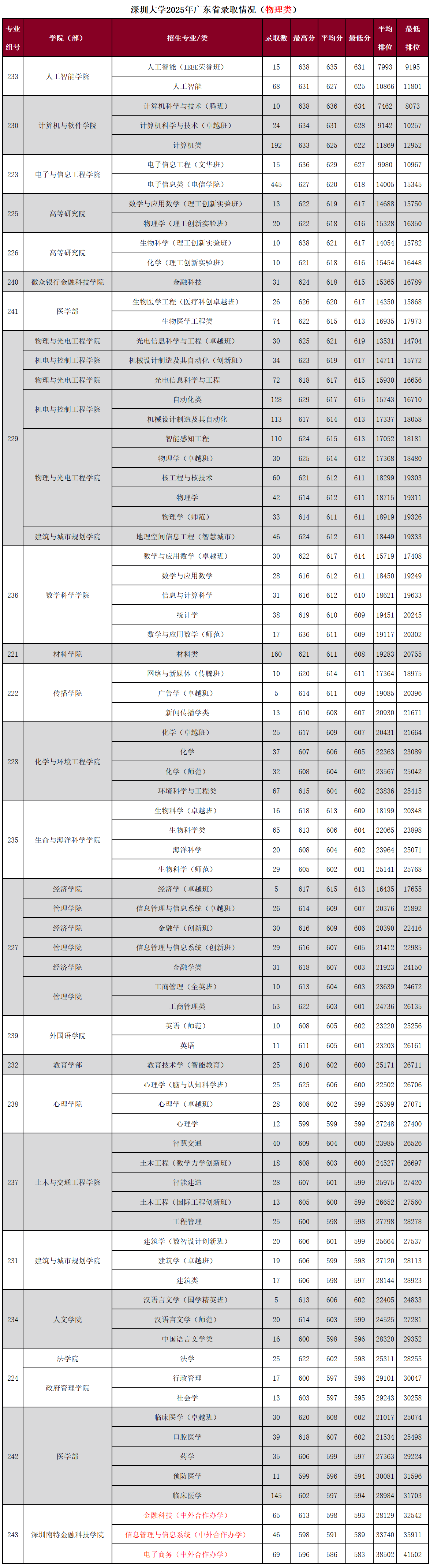 | 智能科学与技术 | 物理+化学 | 628 | 24677 |