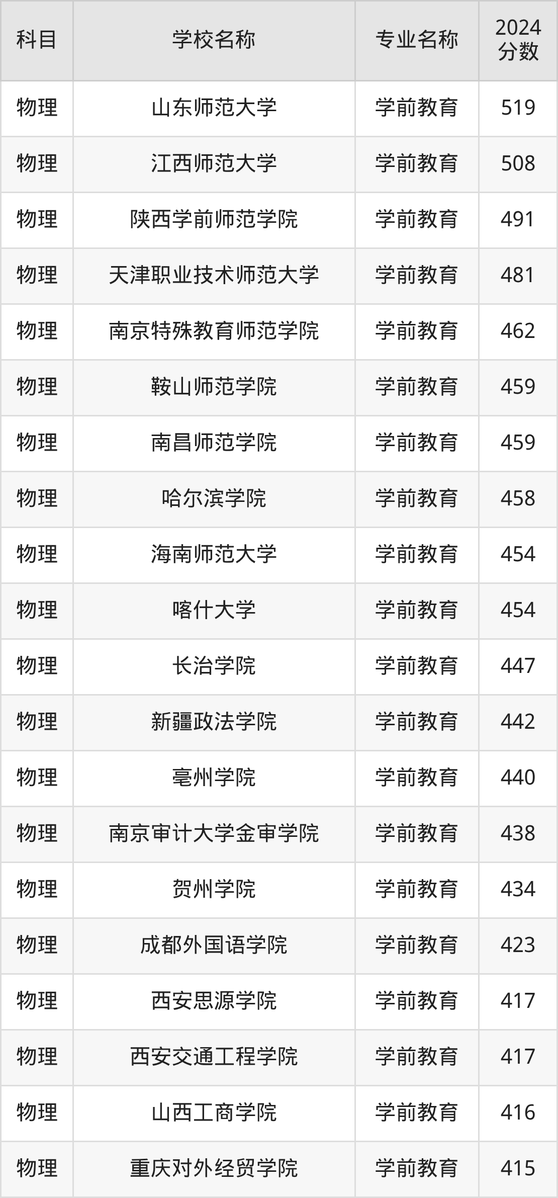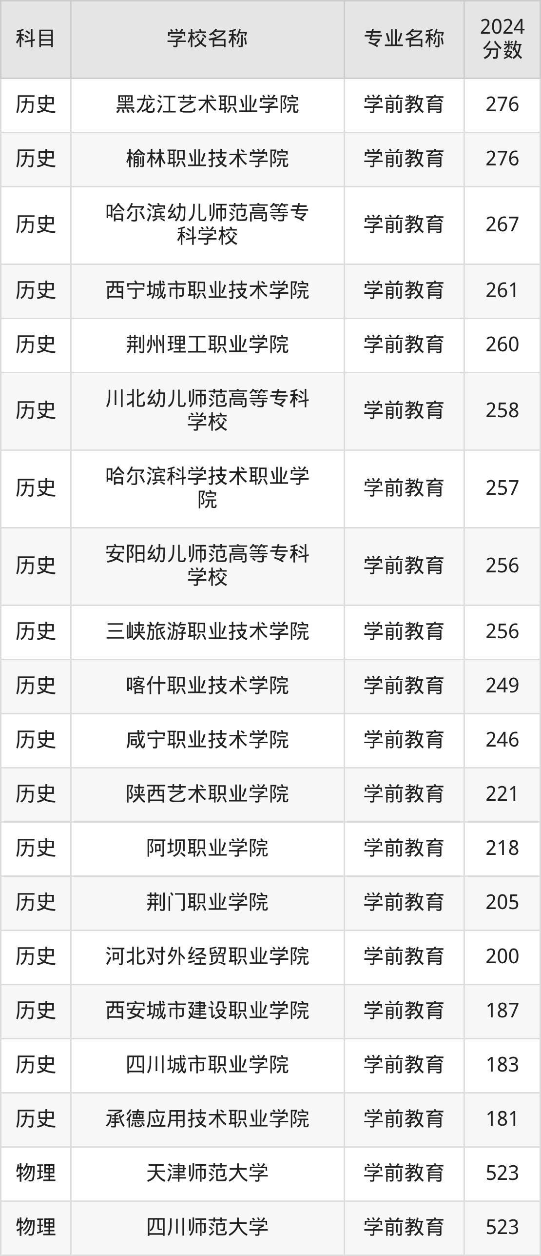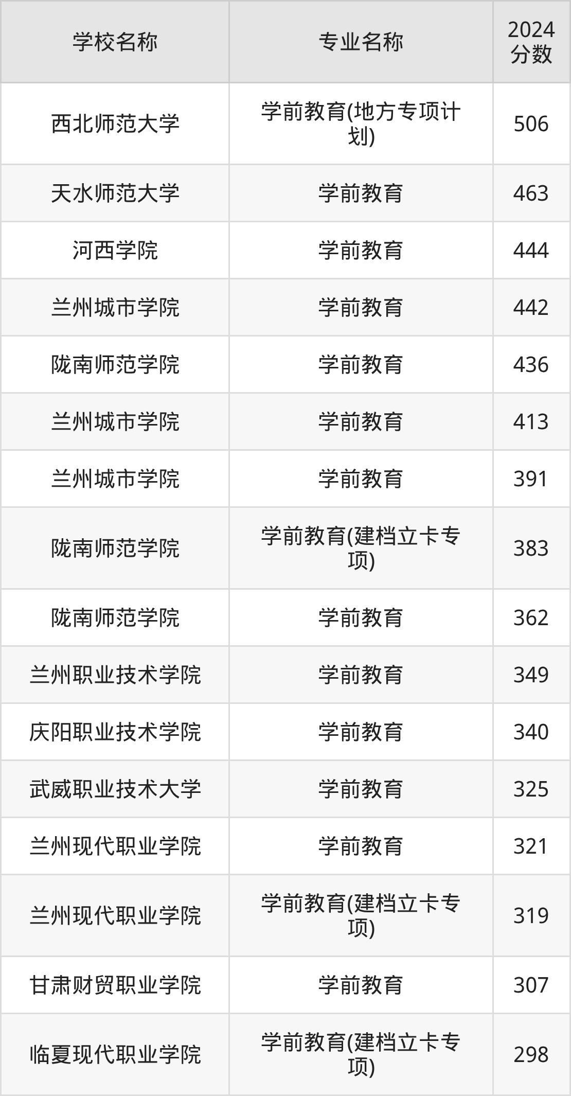 下文将为大家展示甘肃省大学学前教育专业2024年在甘肃高考的最低录取分数线!