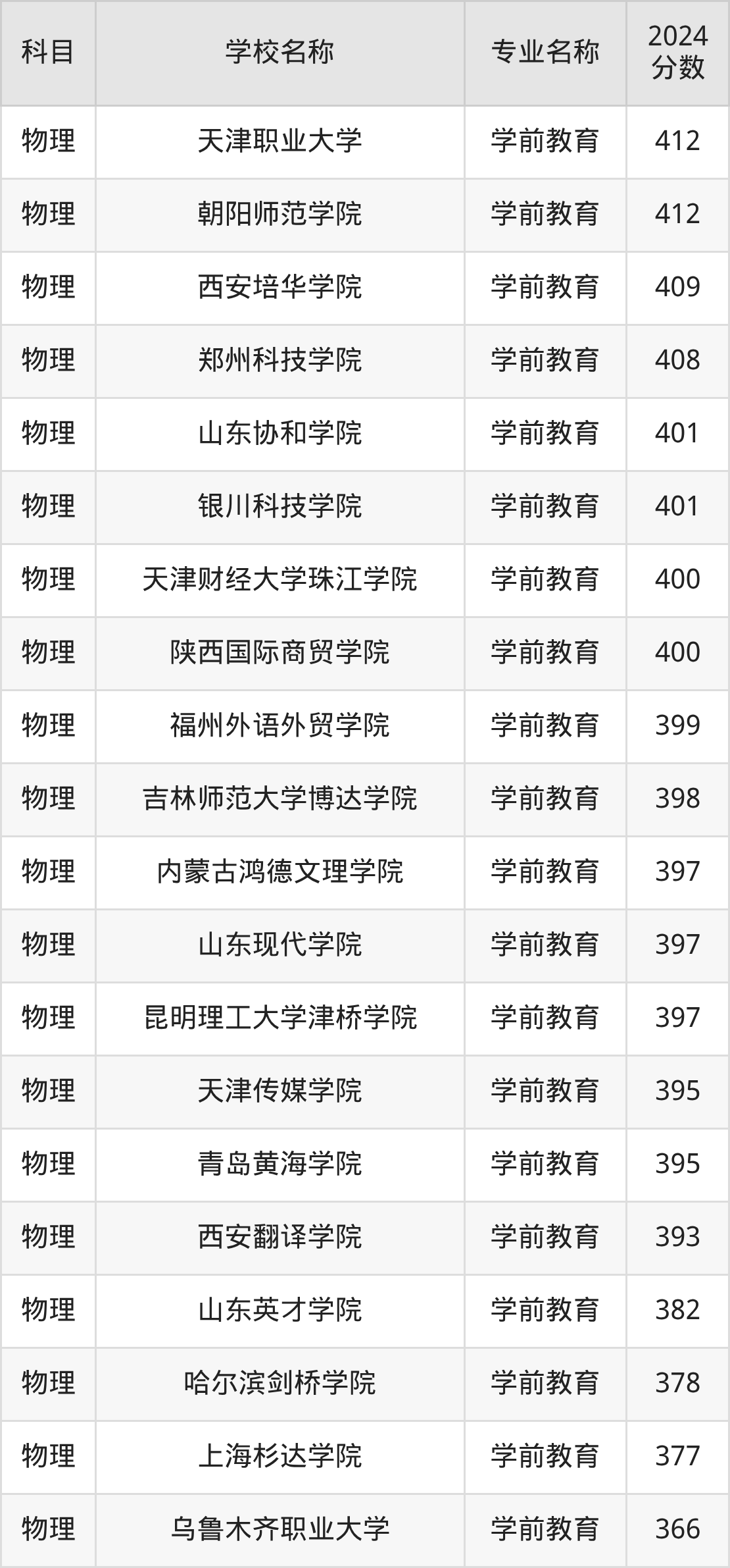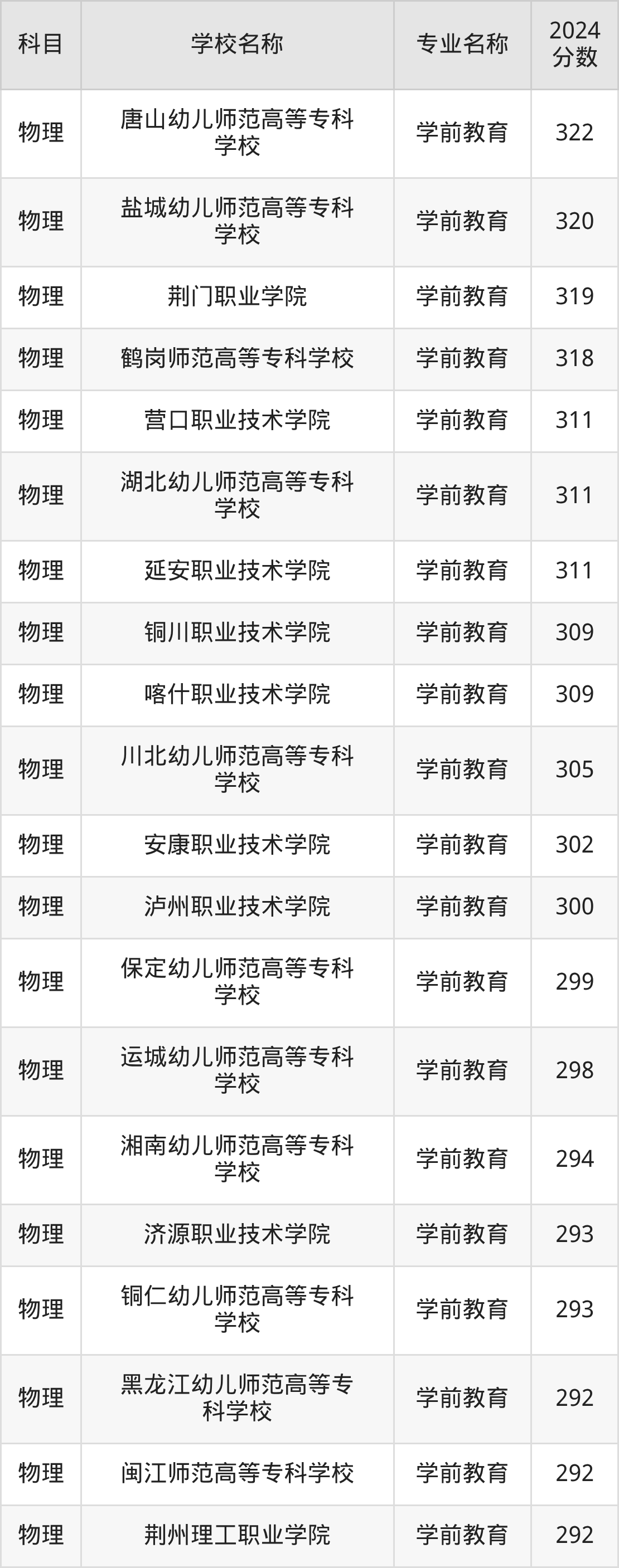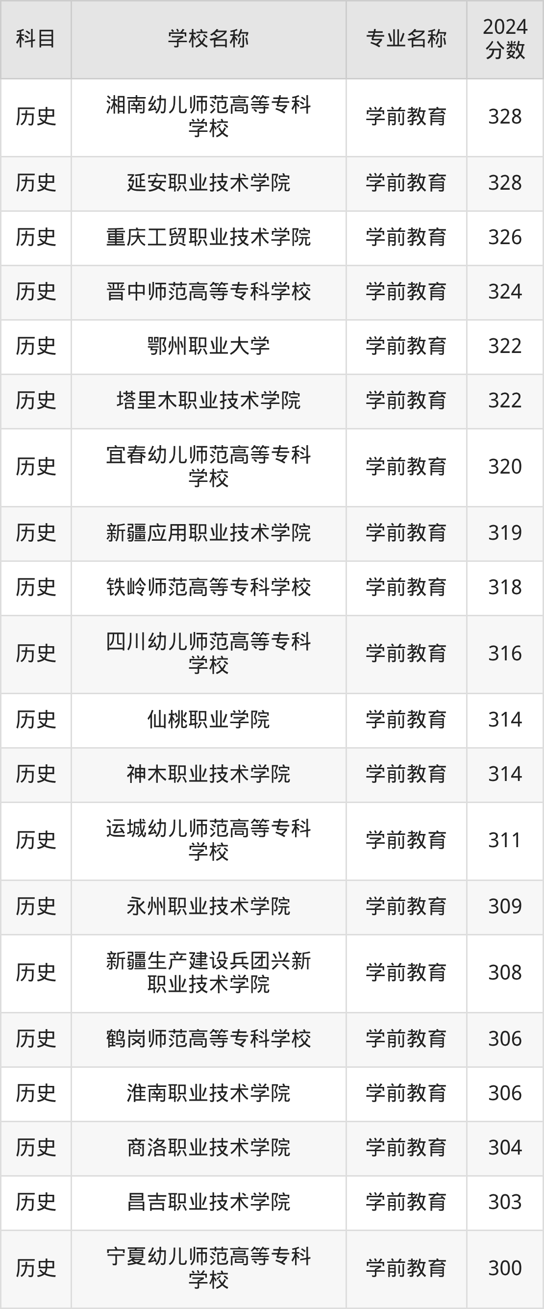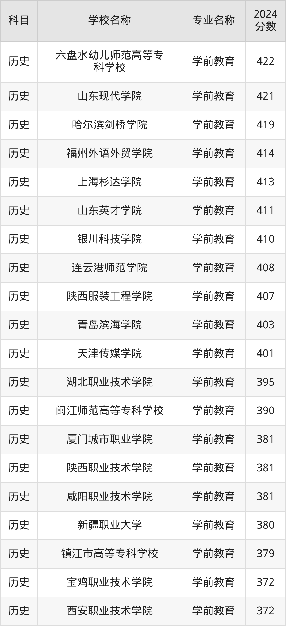 | 庆阳职业技术学院 | 学前教育 | 375 |