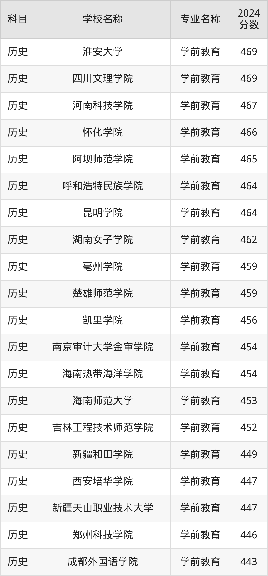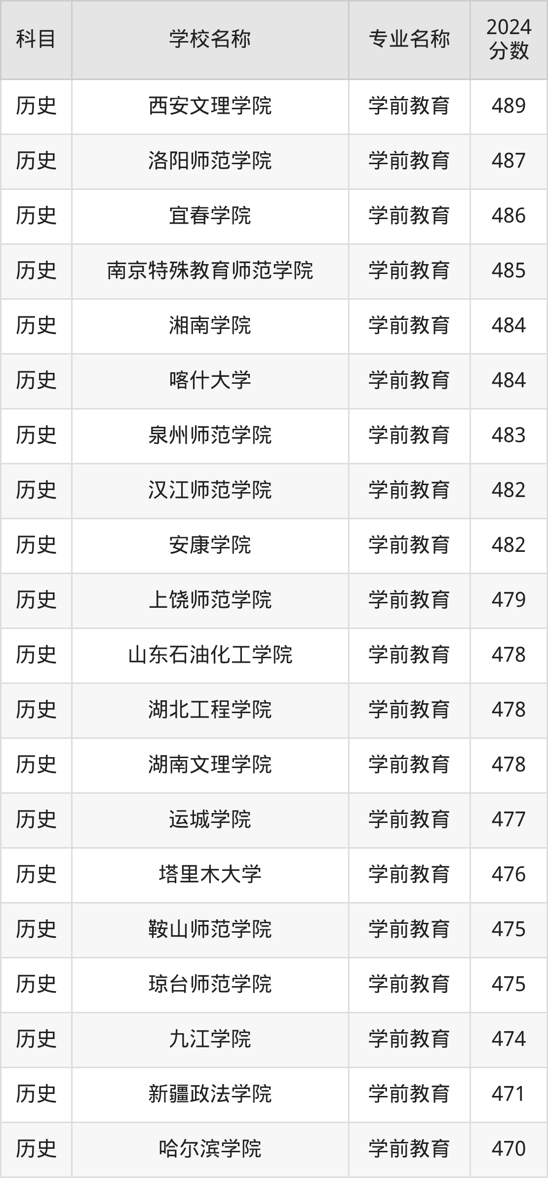 | 甘肃民族师范学院 | 学前教育 | 461 |