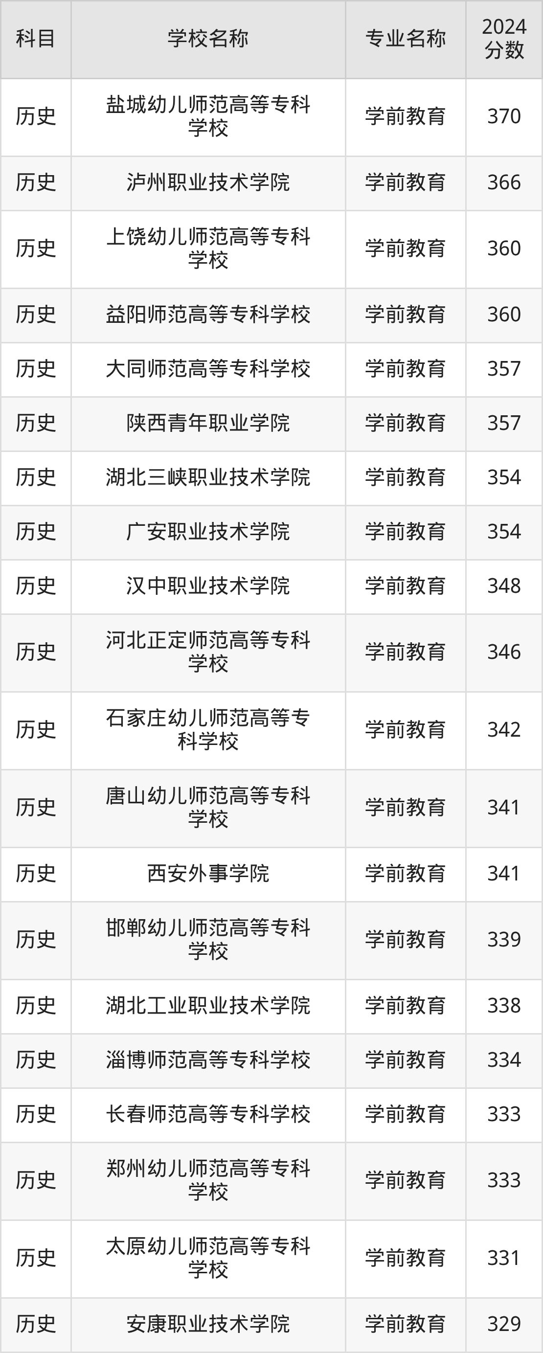| 兰州职业技术学院 | 学前教育 | 369 |