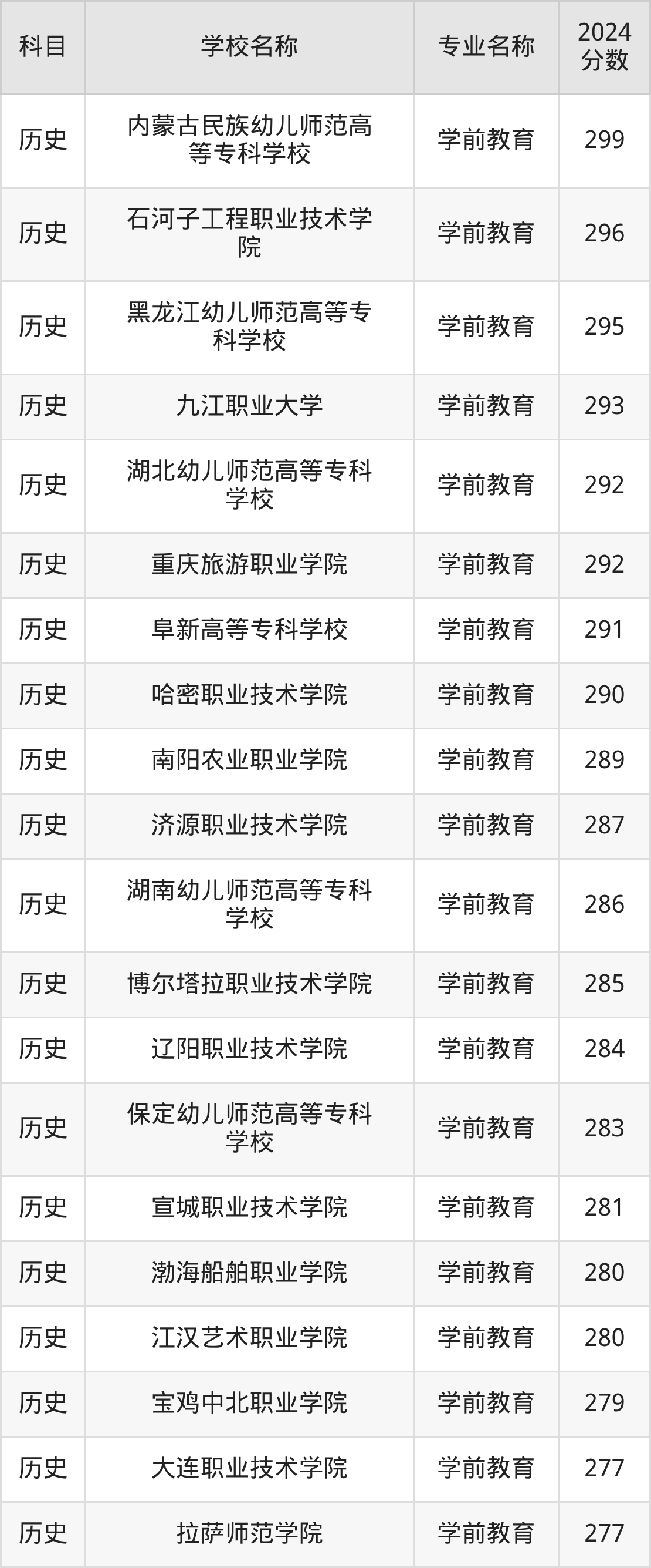 | 临夏现代职业学院 | 学前教育 | 291 |