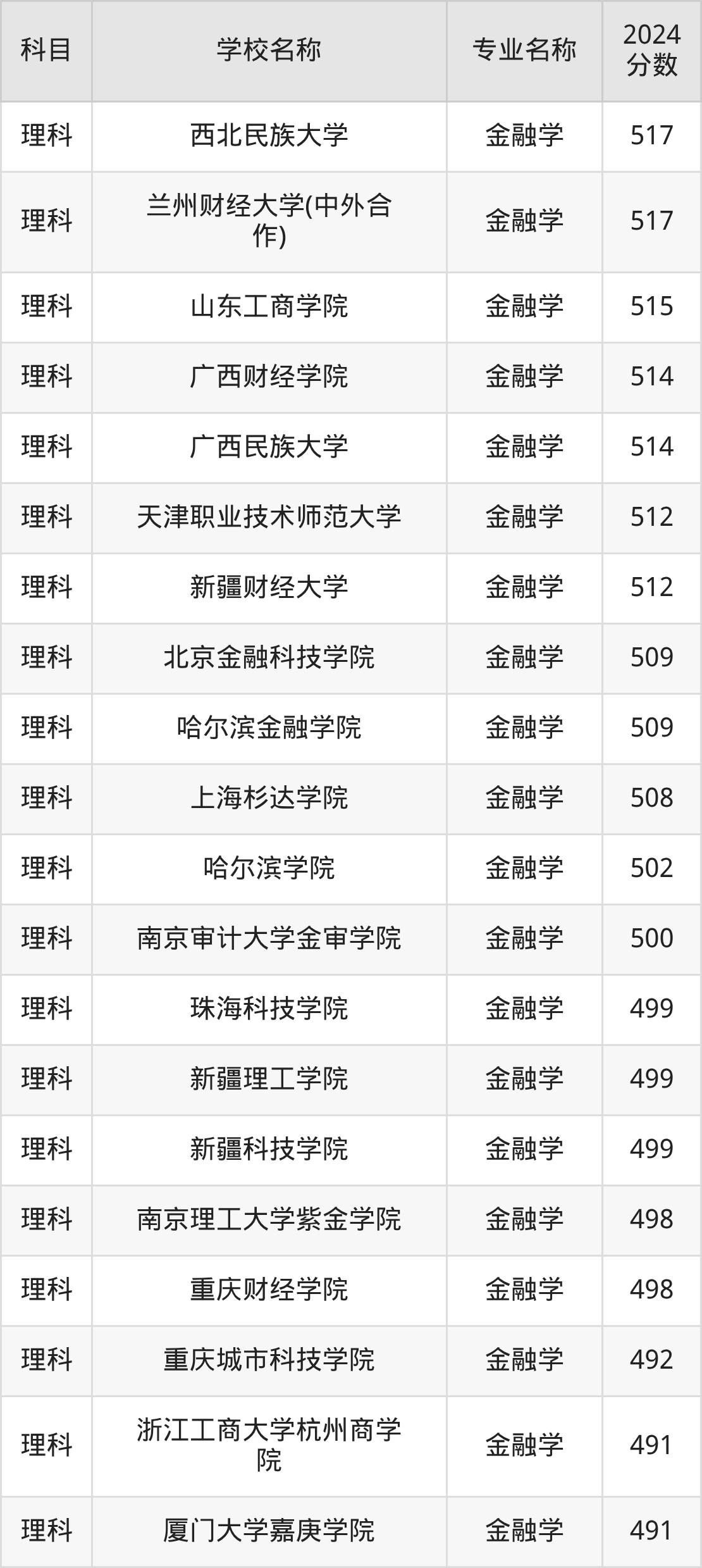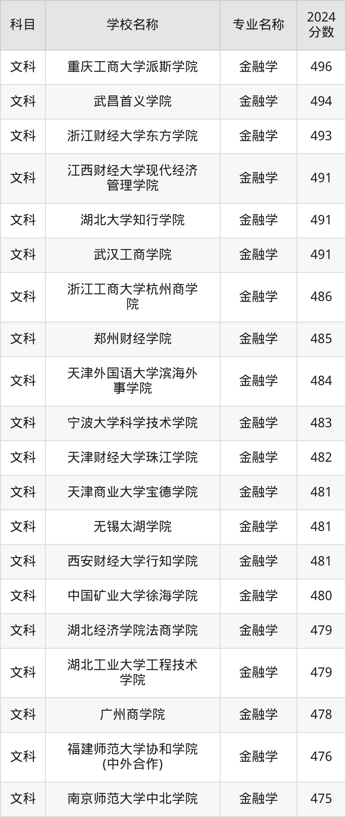 | 西南财经大学天府学院 | 金融学 | 489 |