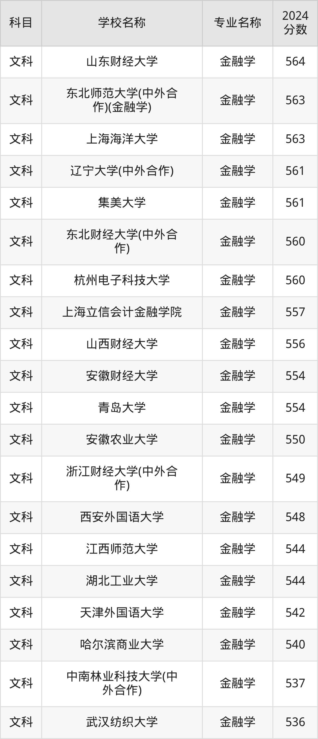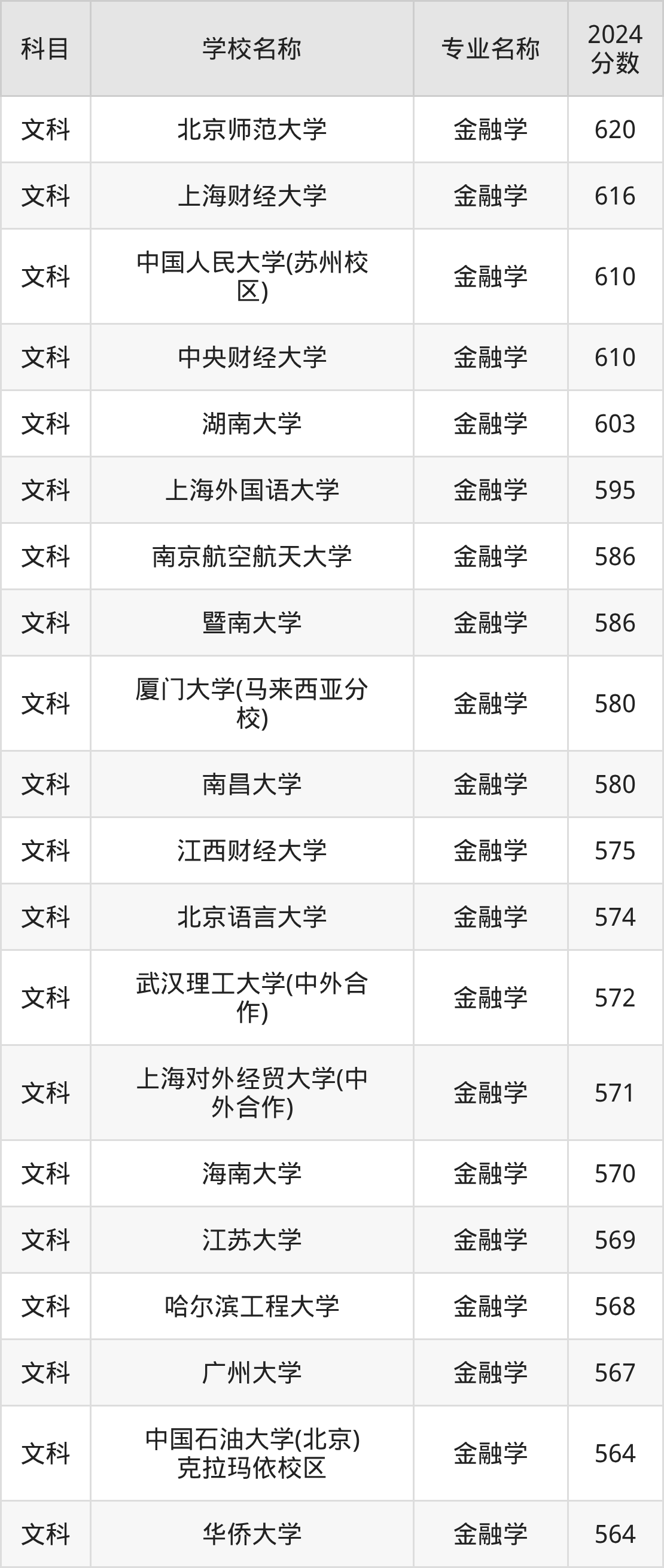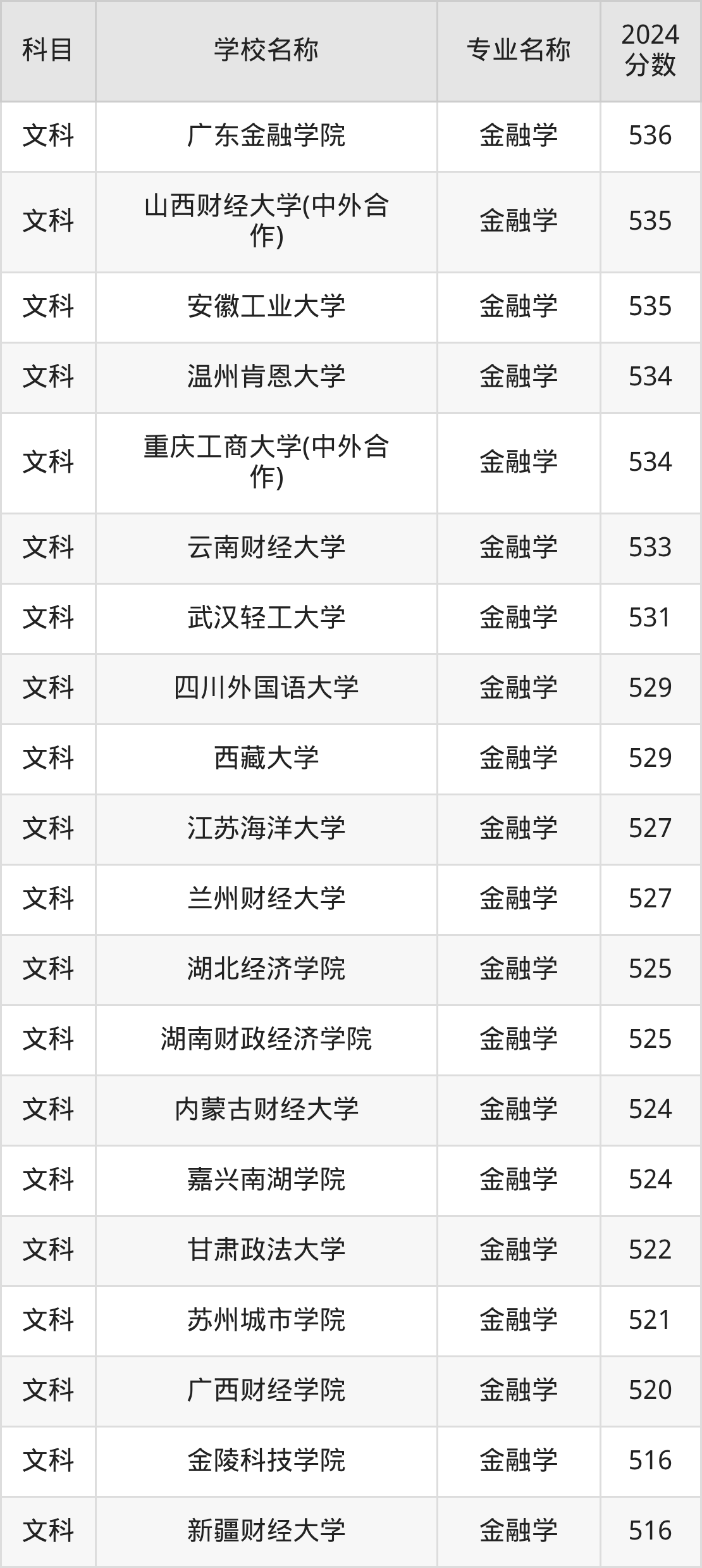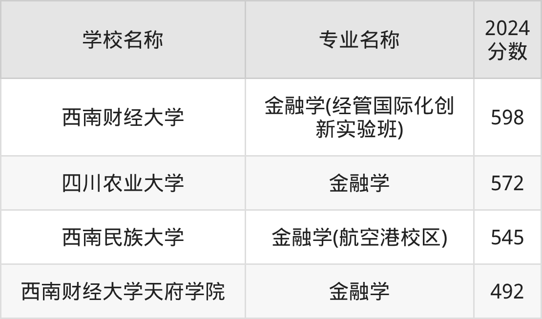 下文将为大家展示四川省大学金融学专业2024年在四川高考的最低录取分数线!