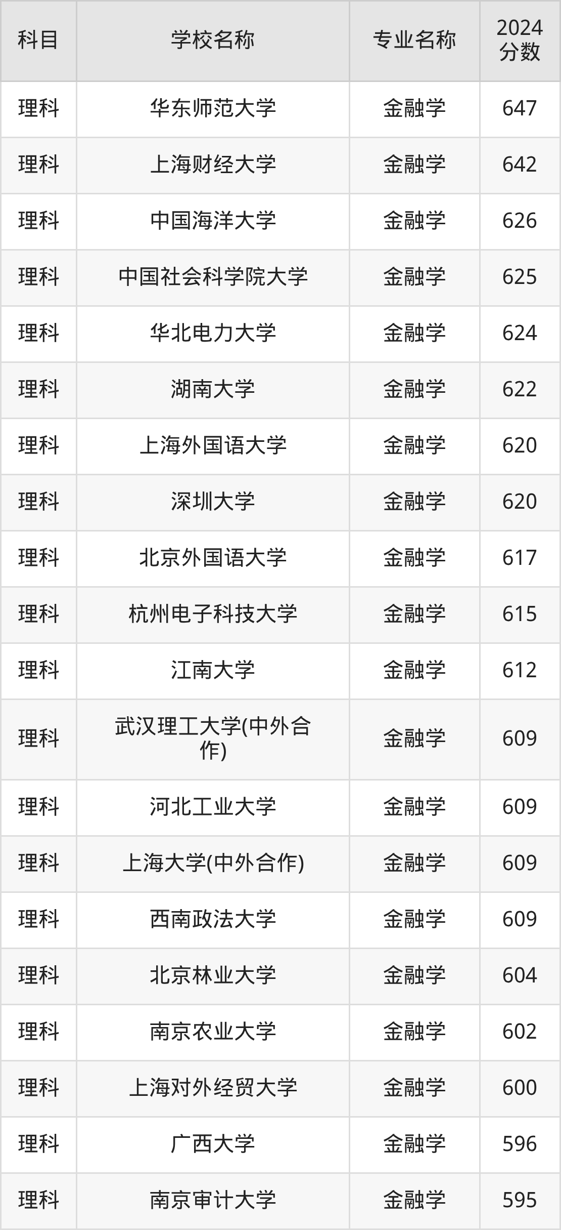 | 电子科技大学 | 金融学(互联网 交叉复合型精英 人才双学位培养 计划) | 663 |