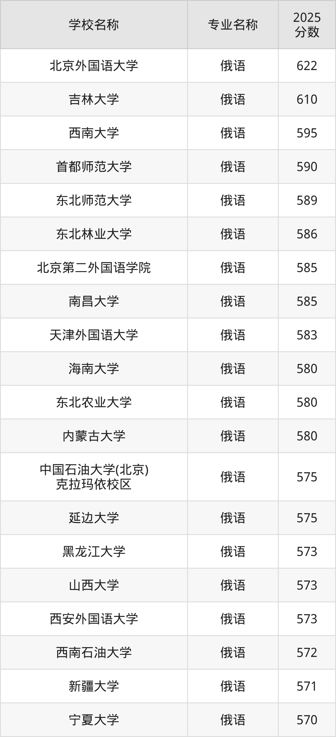| 中国石油大学(华东) | 俄语 | 603 |