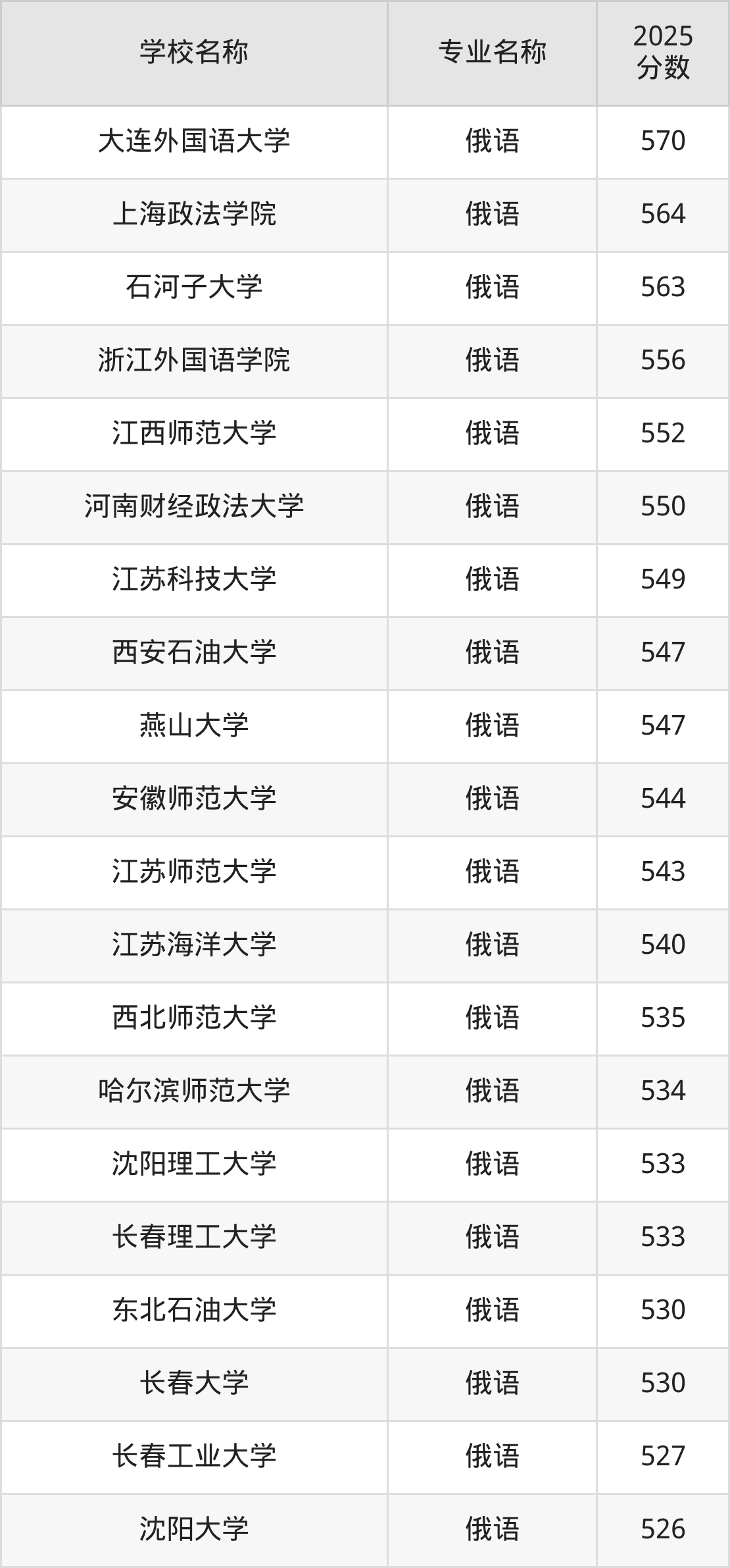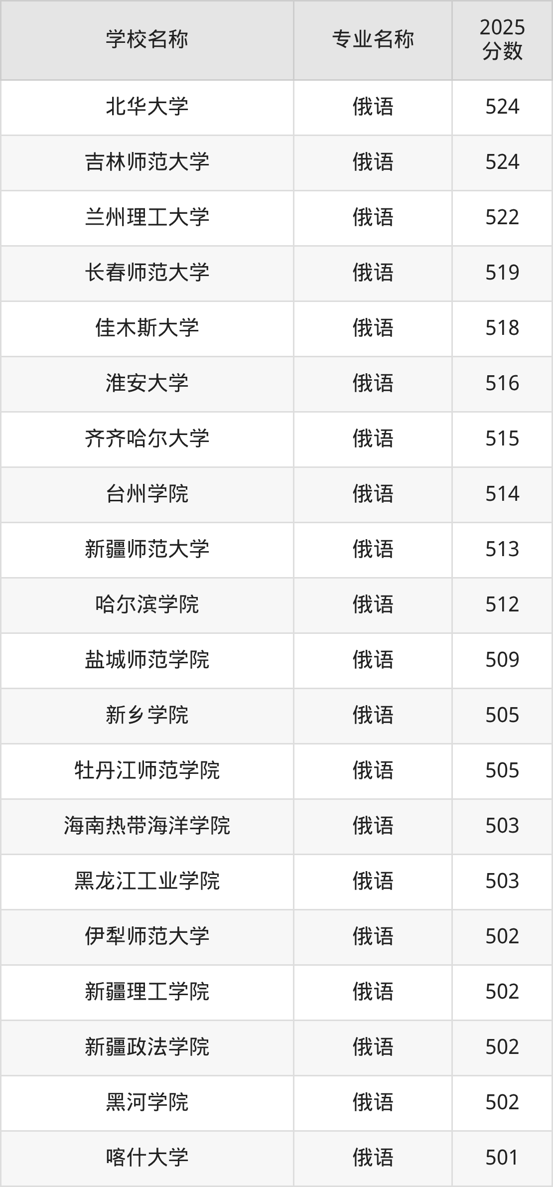 | 哈尔滨理工大学(荣成 校区) | 俄语 | 536 |