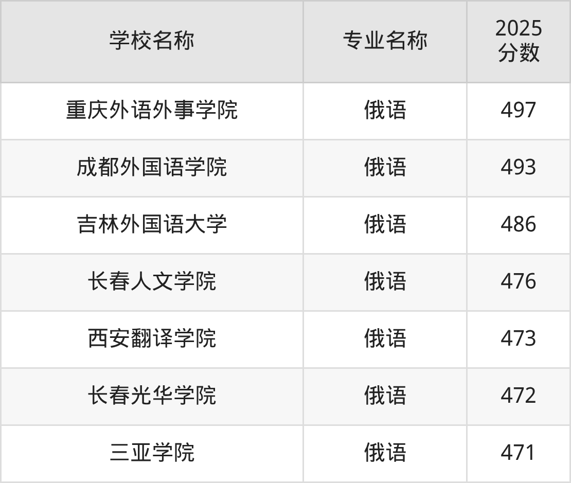 | 青岛城市学院 | 俄语 | 470 |