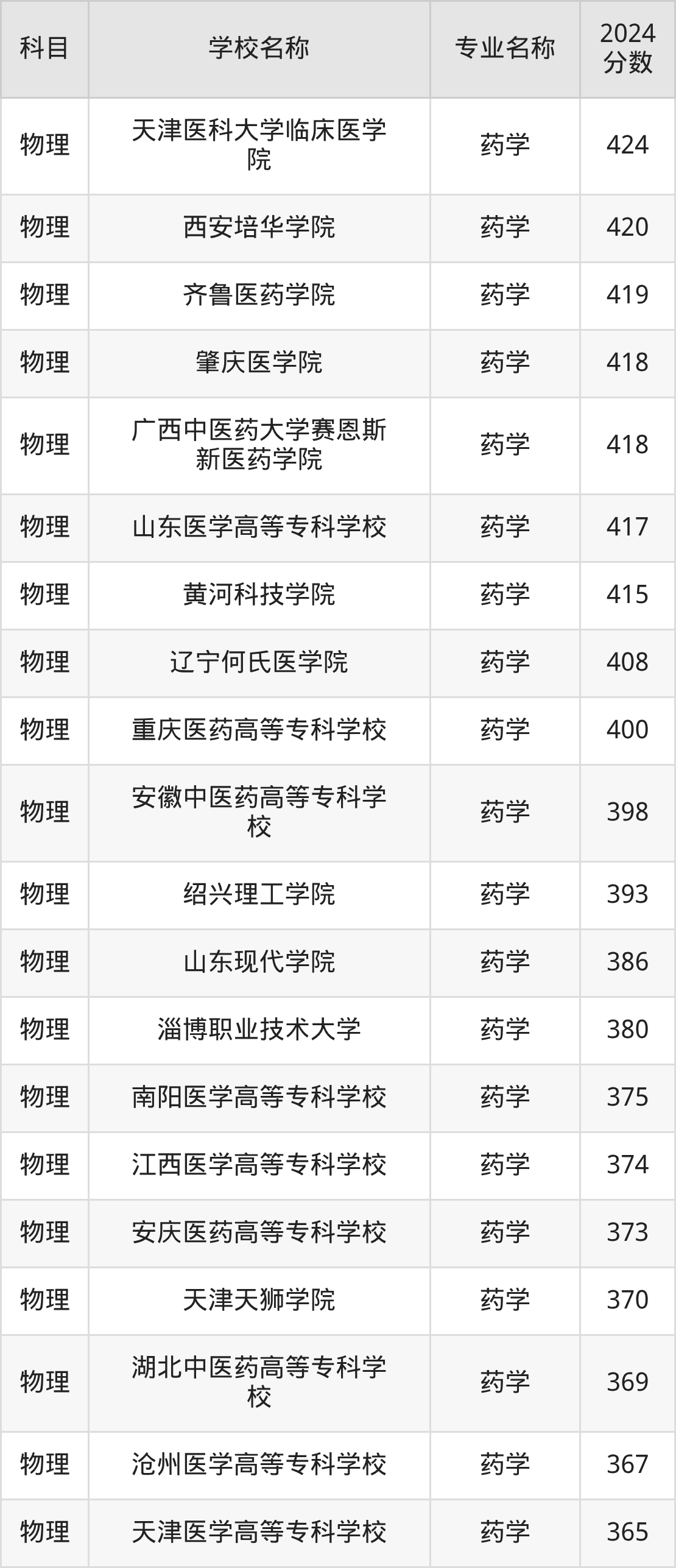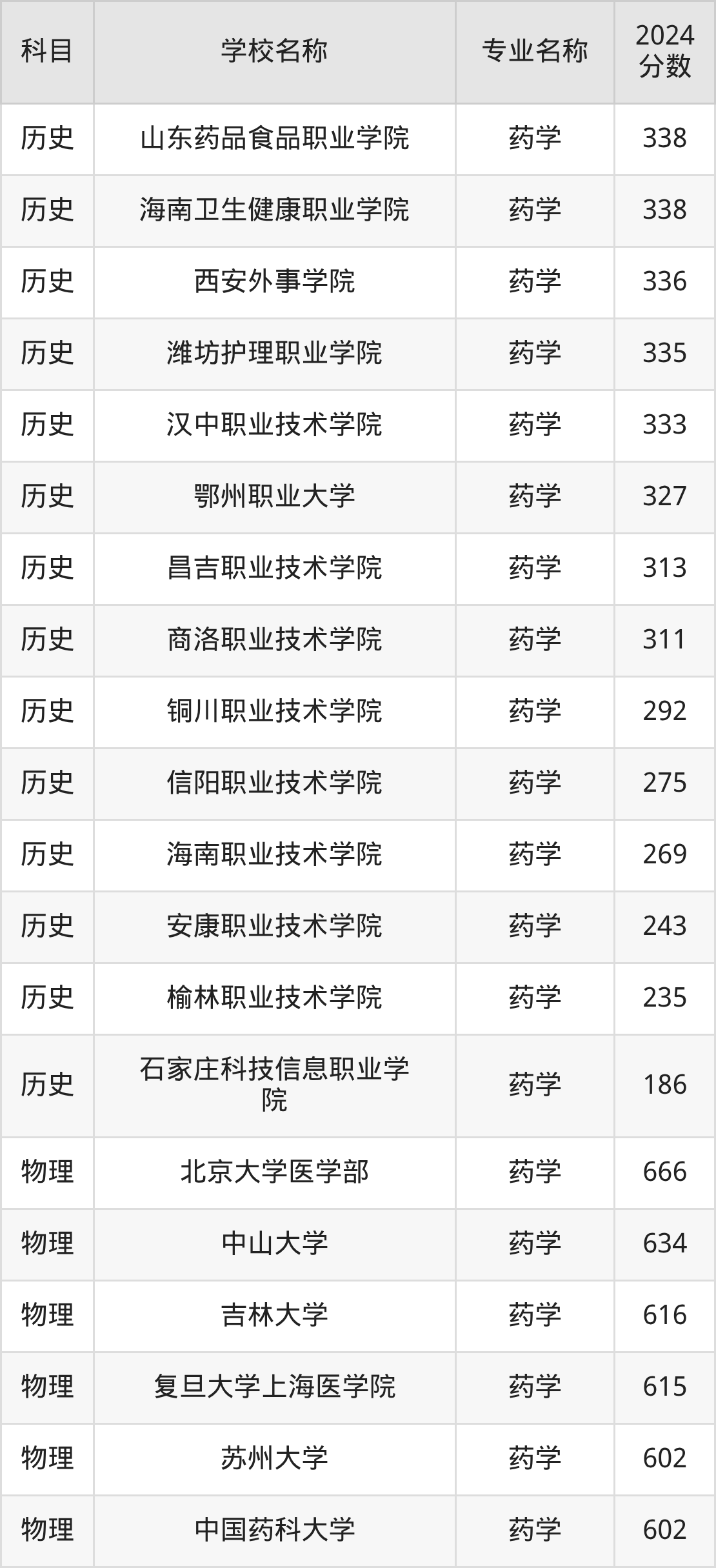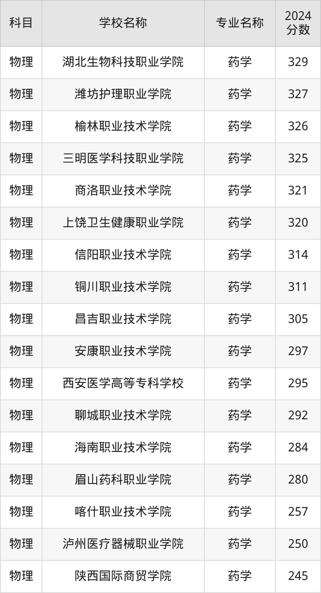 | 甘肃卫生职业学院 | 药学 | 350 |