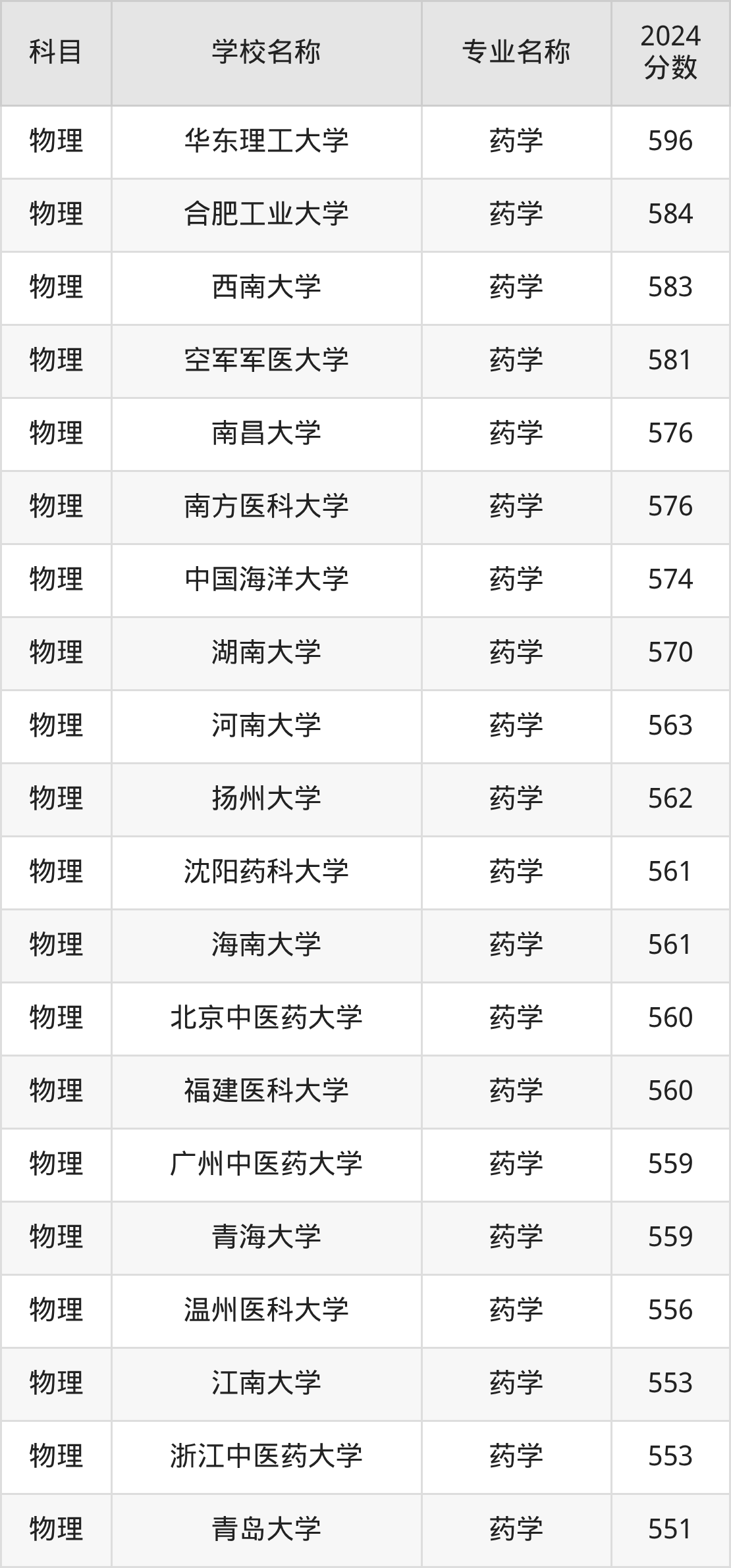 | 兰州大学 | 药学 | 594 |