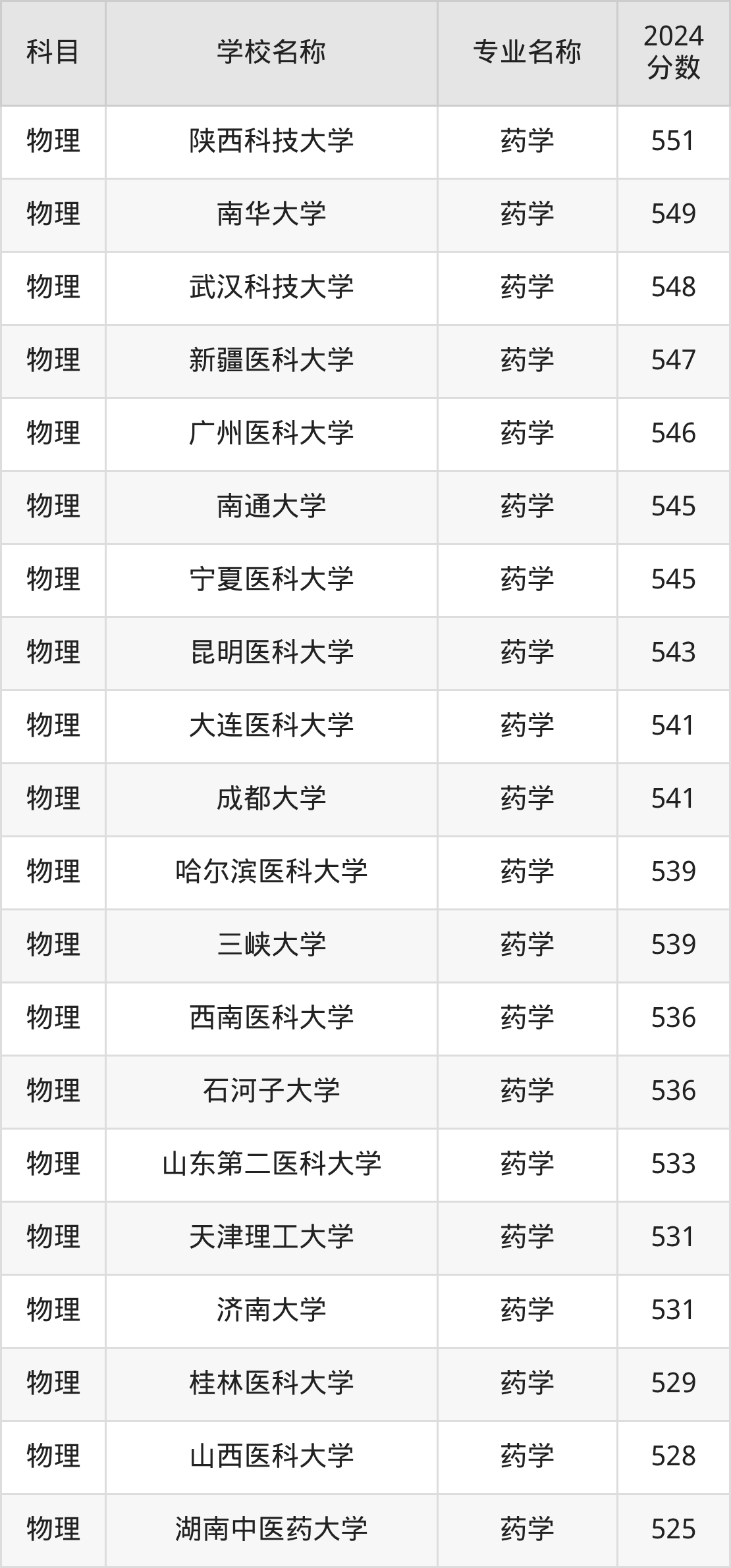 | 学校名称 | 专业名称 | 2024 分数 |