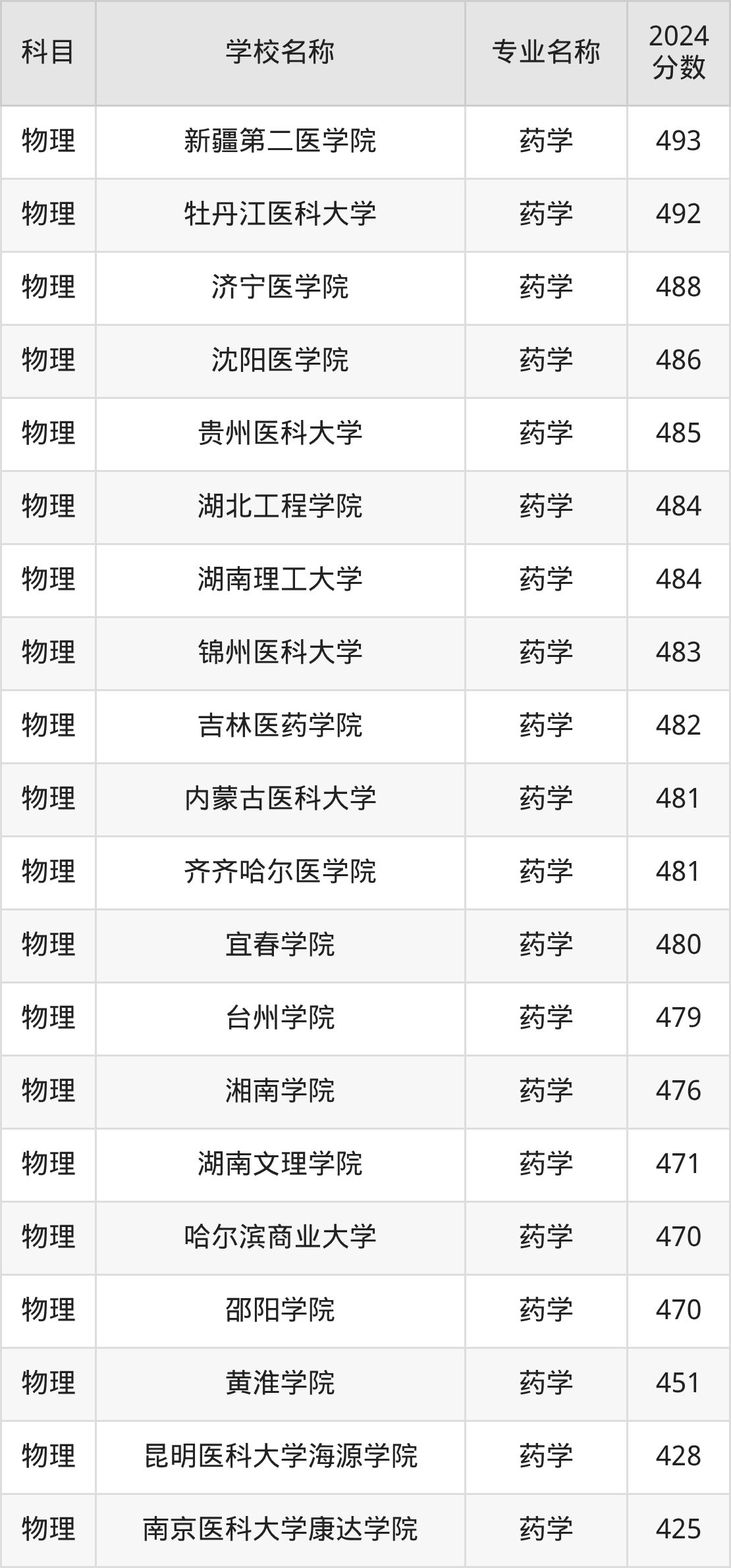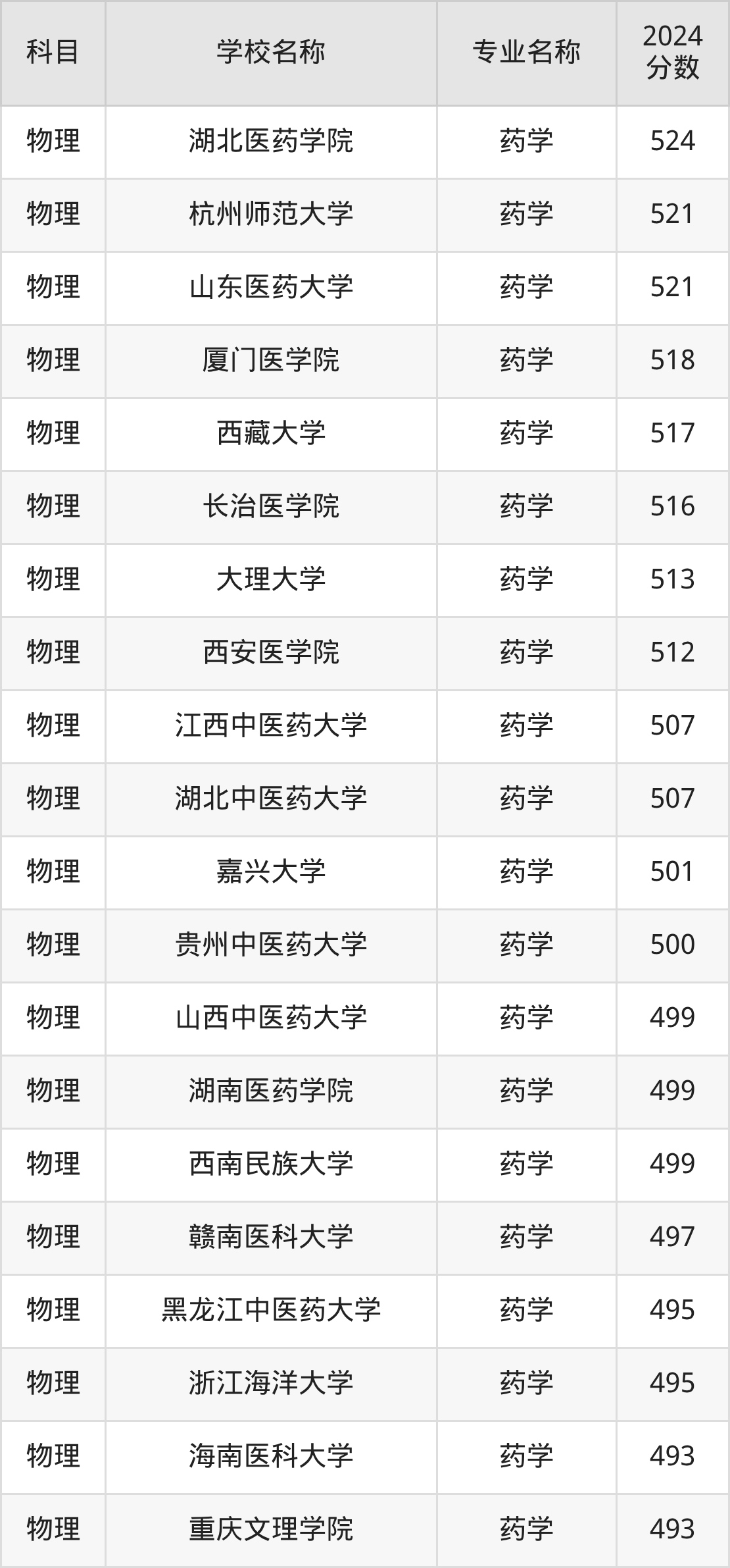 | 甘肃医学院 | 药学 | 464 |