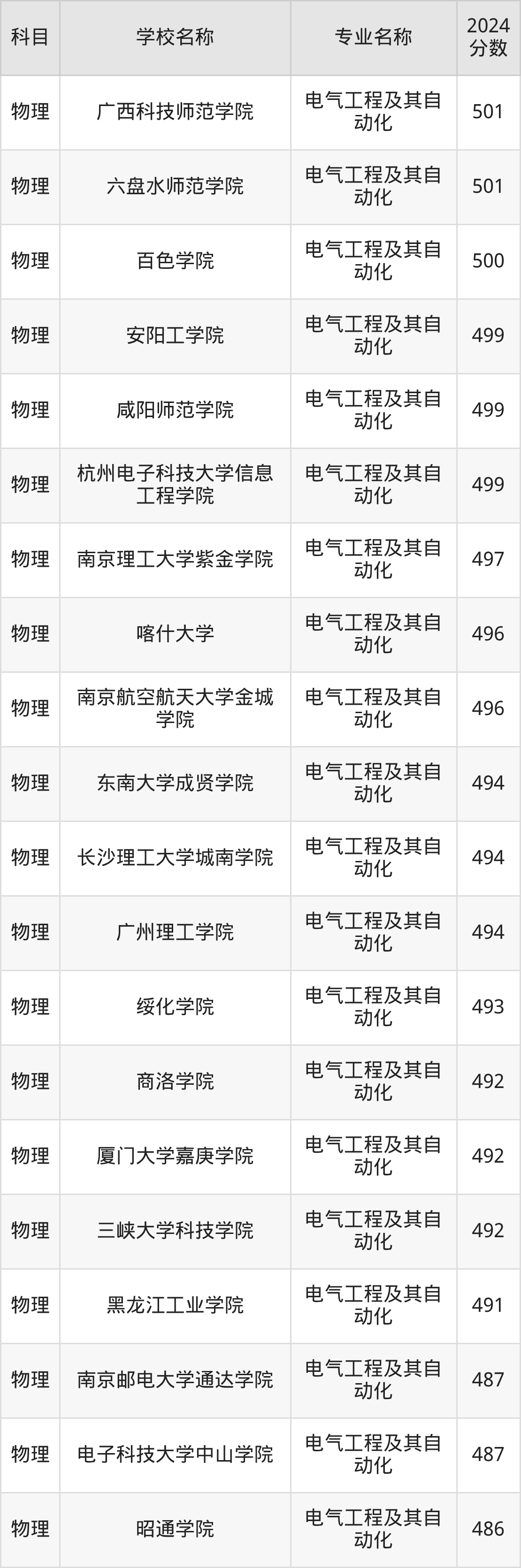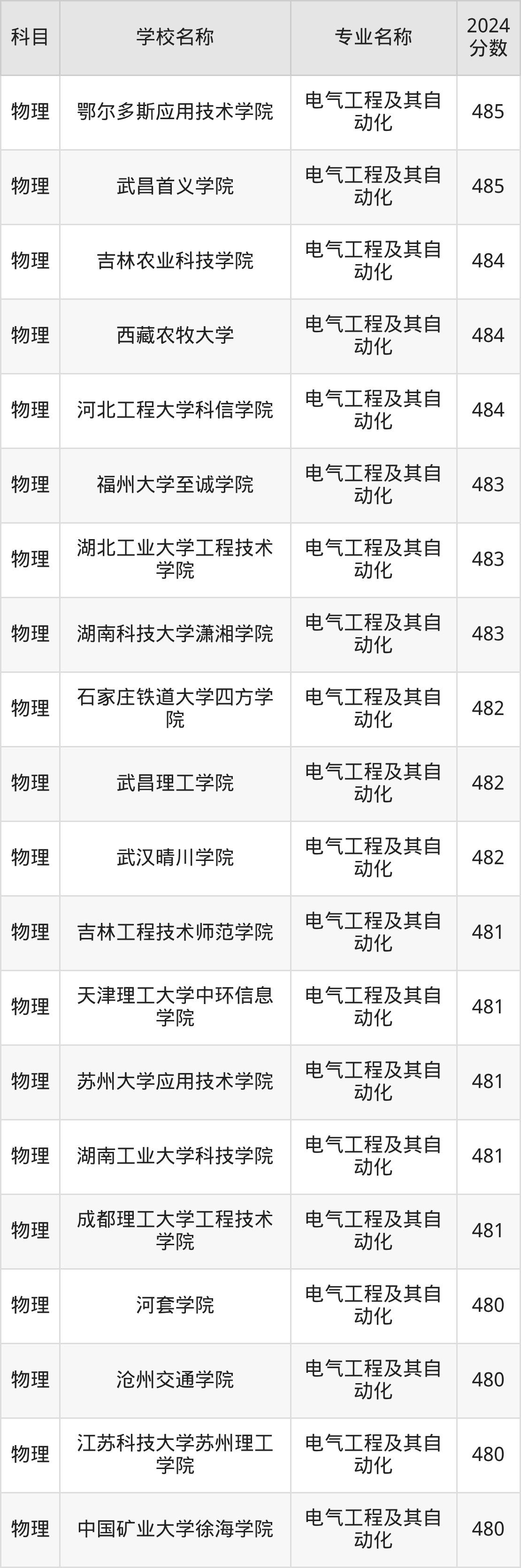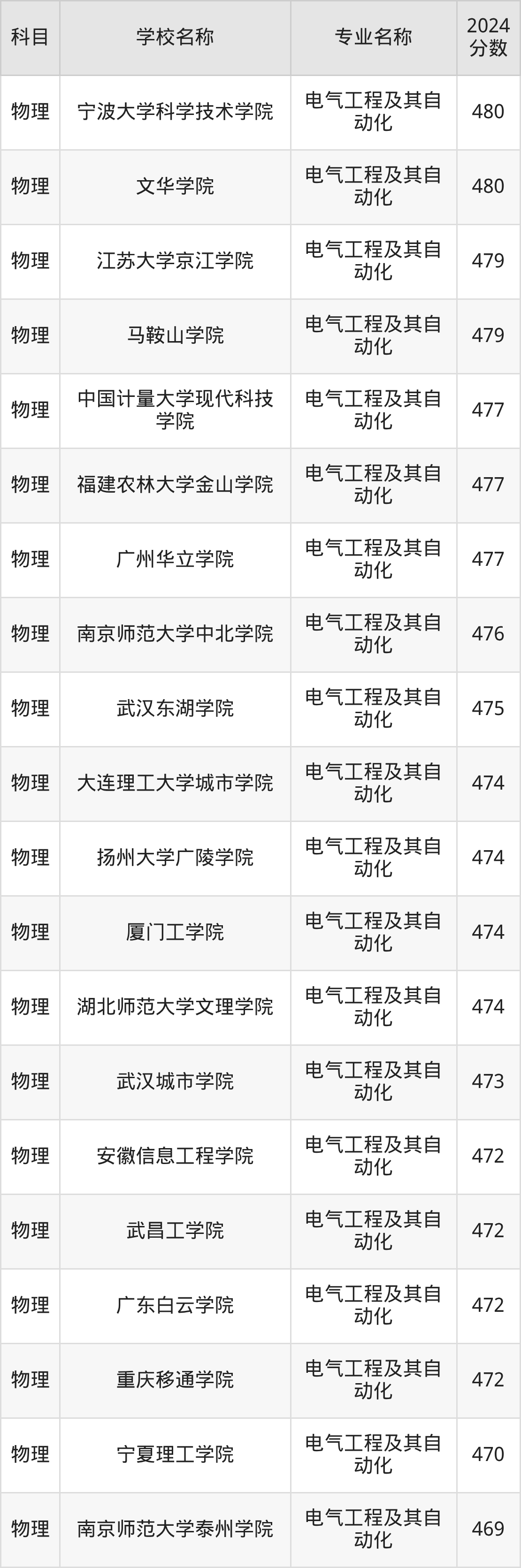 | 南昌大学科学技术学院 | 电气工程及其自 动化 | 480 |