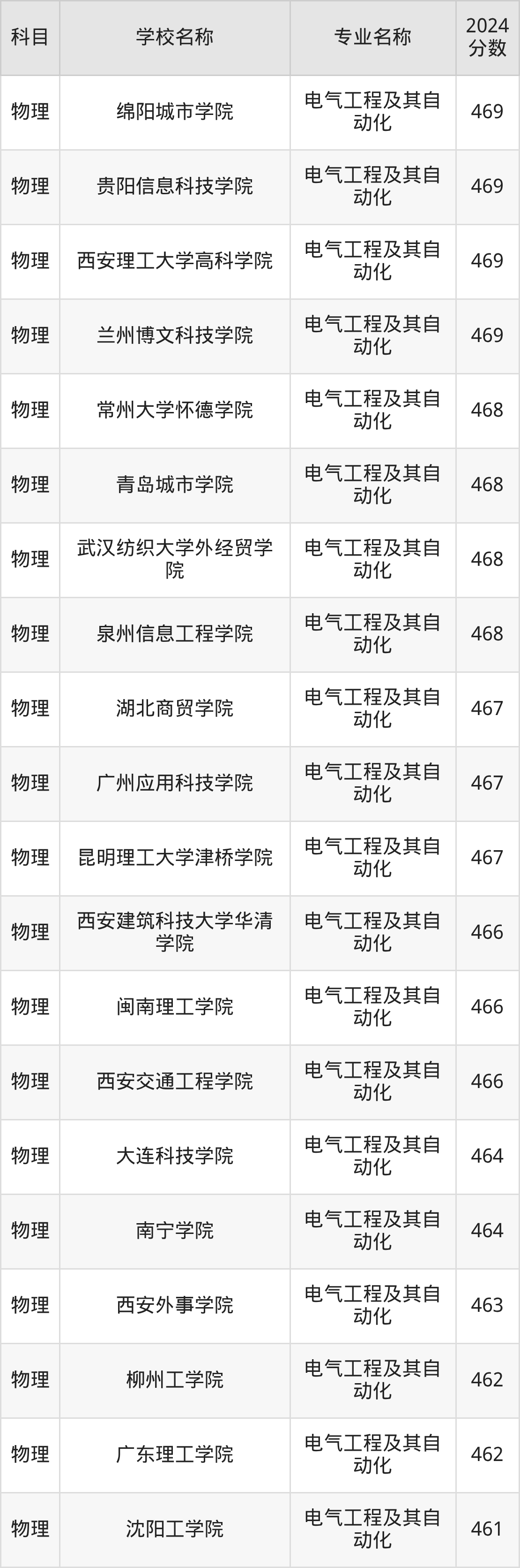 | 南昌理工学院 | 电气工程及其自 动化 | 467 |