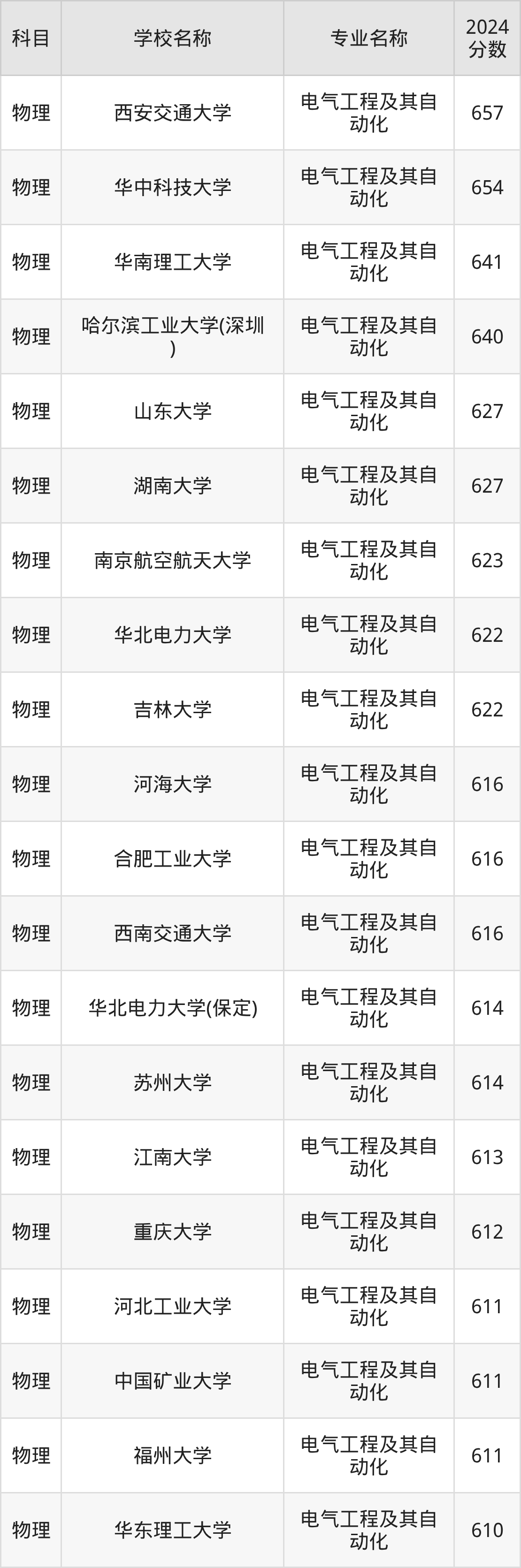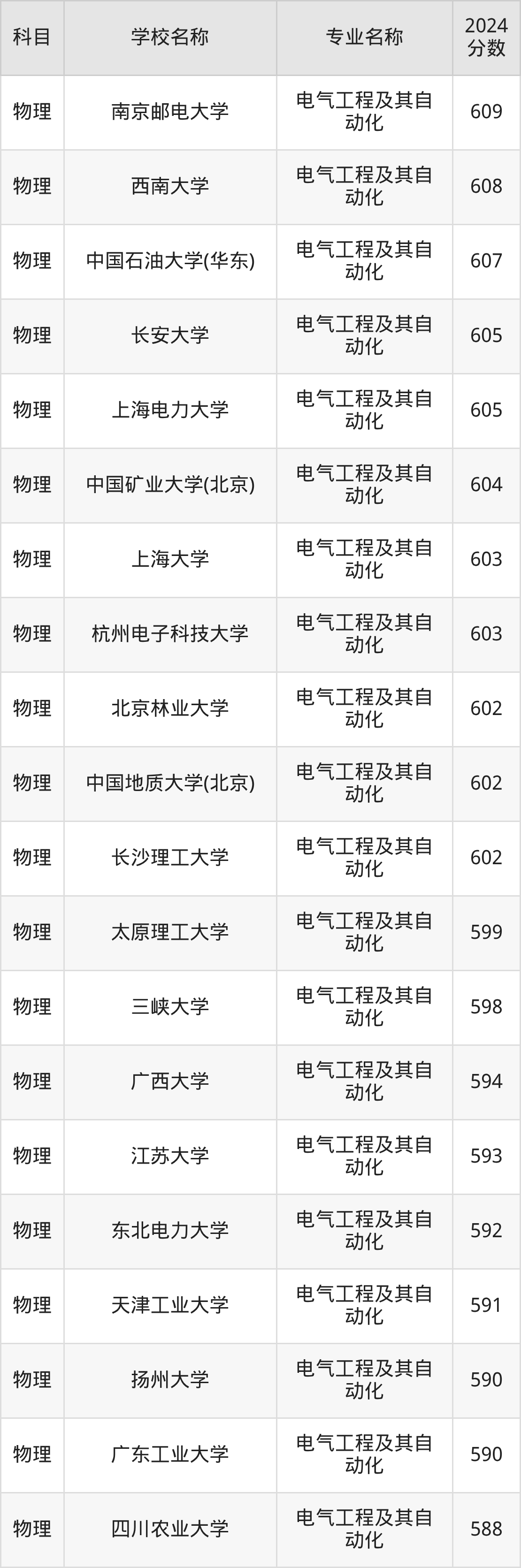 | 南昌大学 | 电气工程及其自 动化 | 603 |