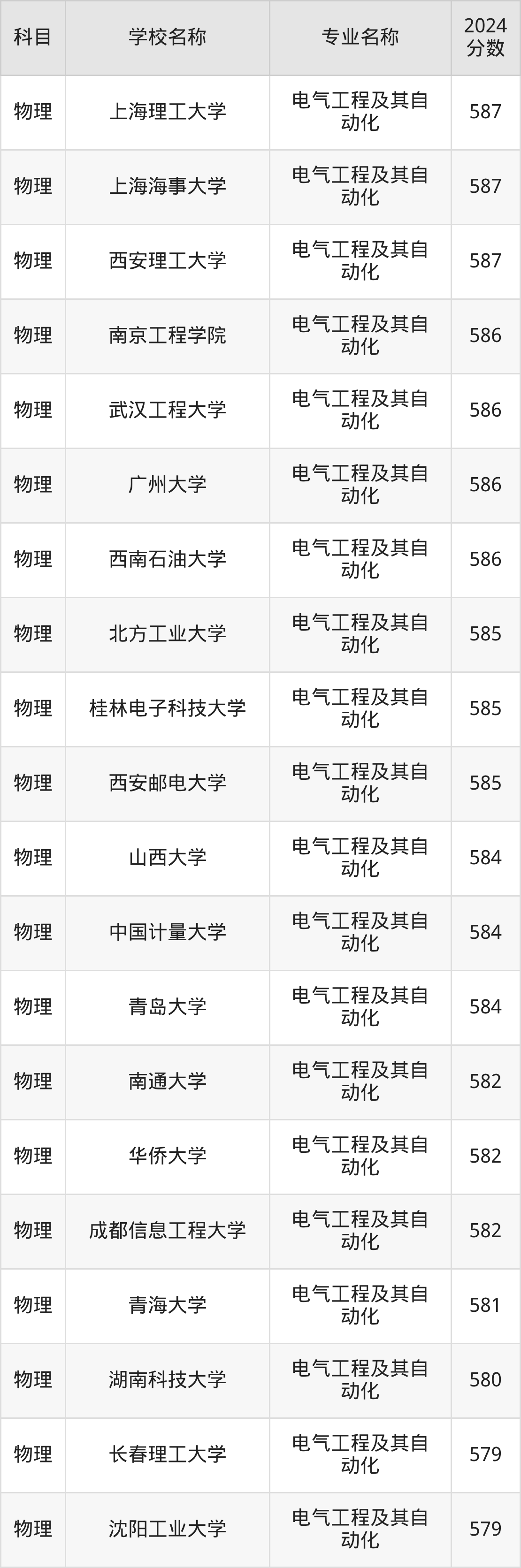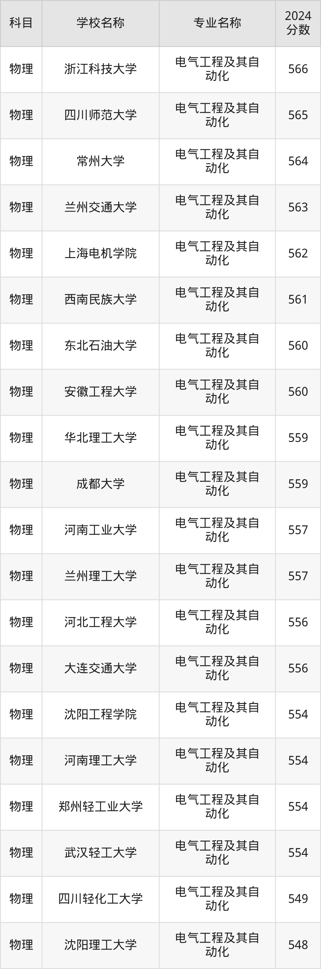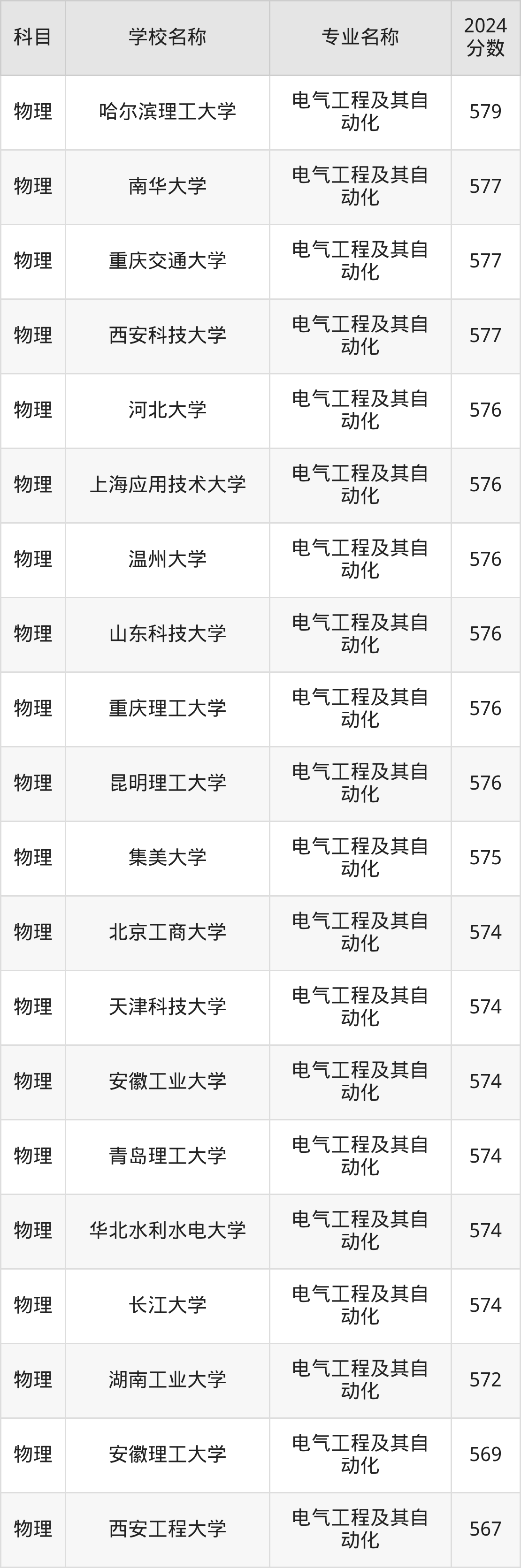 | 华东交通大学 | 电气工程及其自 动化 | 573 |