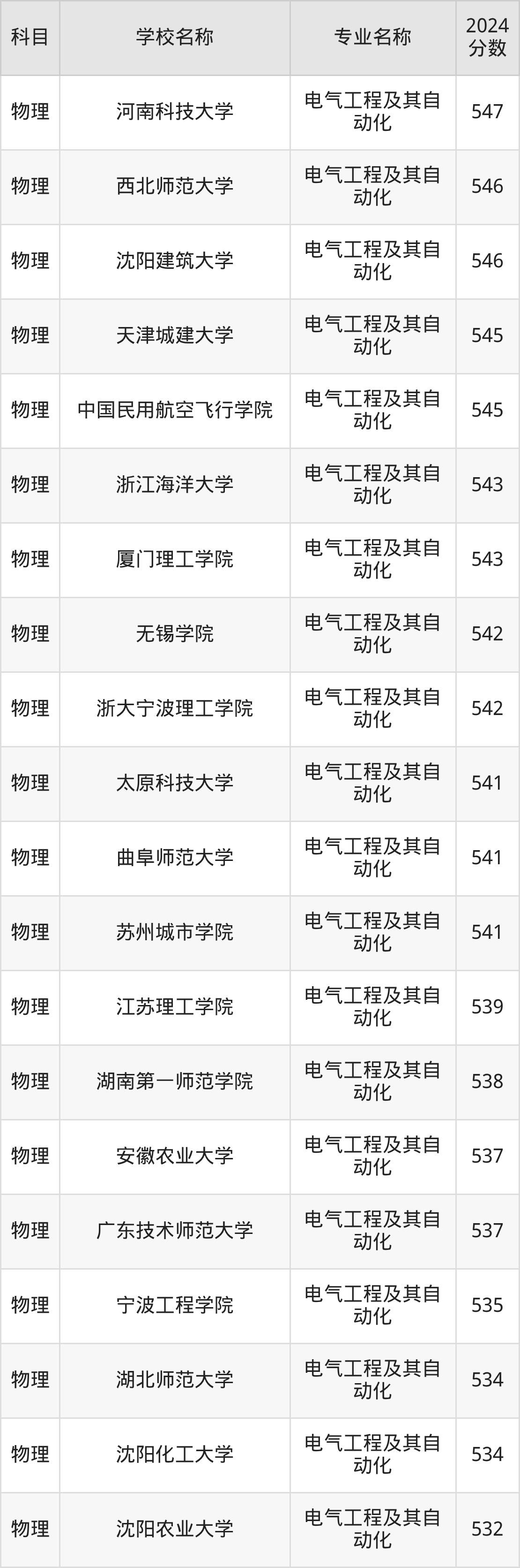 | 江西水利电力大学 | 电气工程及其自 动化 | 547 |