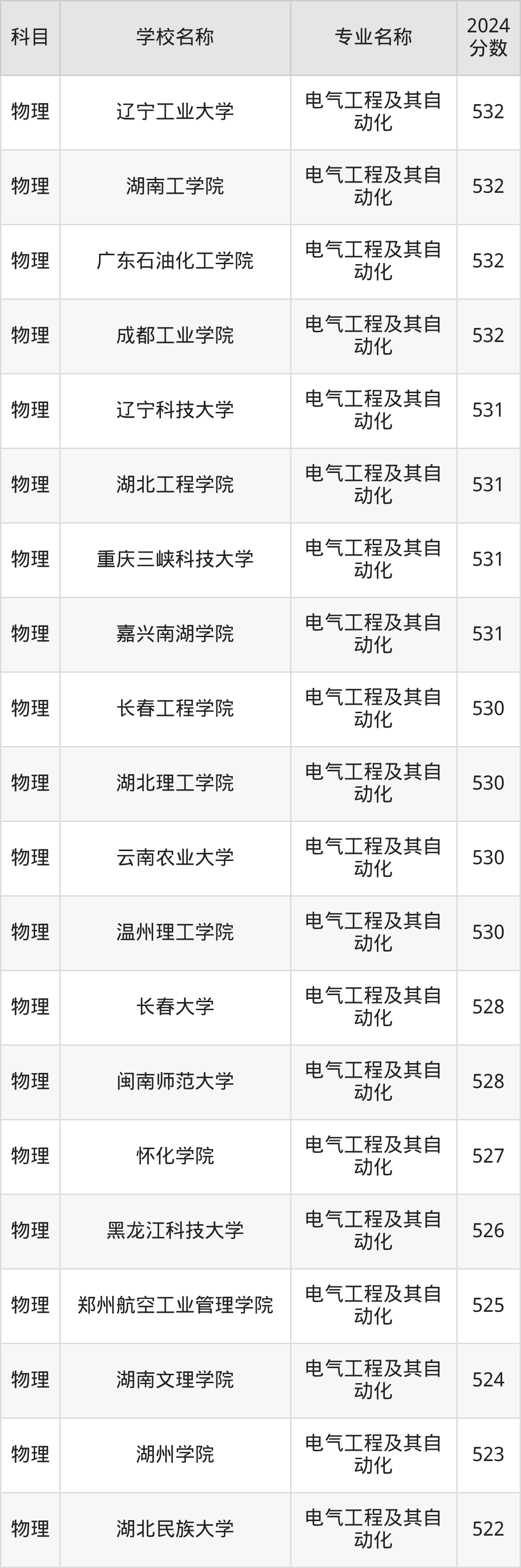| 井冈山大学 | 电气工程及其自 动化 | 530 |